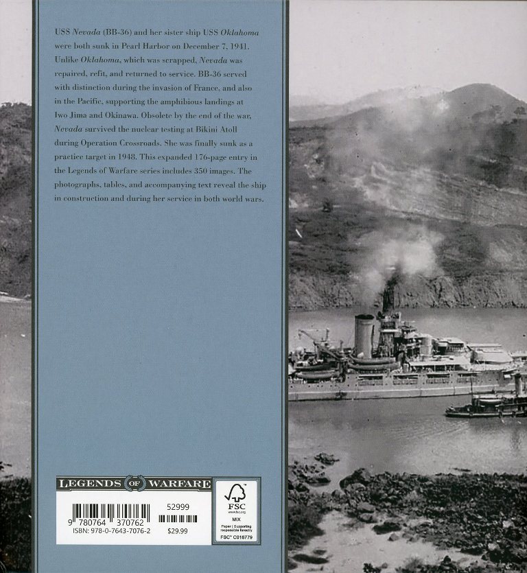 | David Doyle Books has released another new title in the "Legends of Warfare" series. This one covers the USS Nevada, BB-36, a Nevada-class battleship, which served from 1916 to 1946. This book is 176 pages long, and includes a history of the Nevada, from her keel laying at Mare Island Navy Yard in October 1916, through her ordeal at Pearl Harbor, her rebuild, subsequent return to service with the Pacific Fleet, and final disposition as a target in 1948. The book has over 350 photos. | ||||||||||||||||