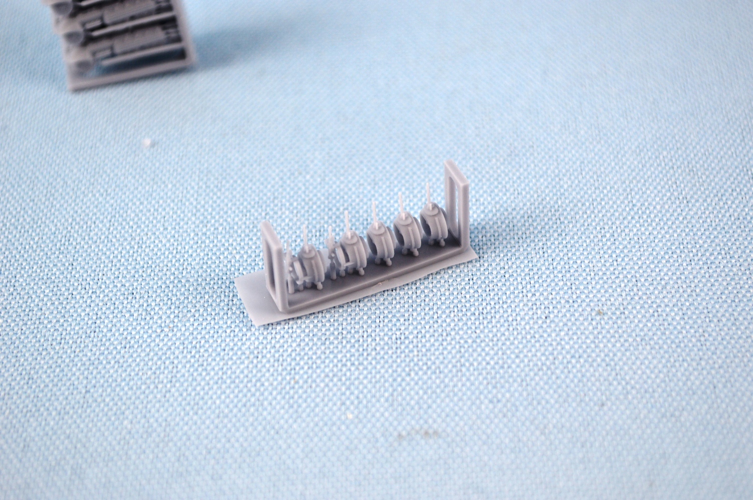 | There are four M8 Greyhounds in the package. The hulls and turrets are printed separately. Two of the turrets have the raised ring with the machine gun on it, two omit this. | ||||||