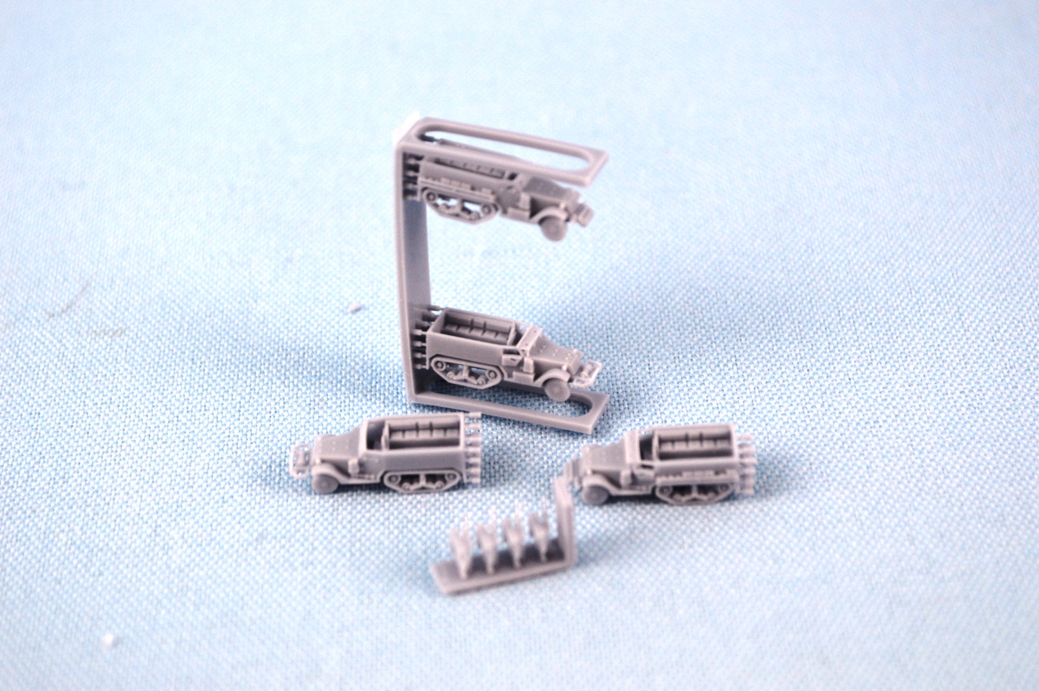 | There are four M3A1 Half Tracks in the package. Four rings with .50 cal machine guns mounted on them are provided for you to use. | ||||||