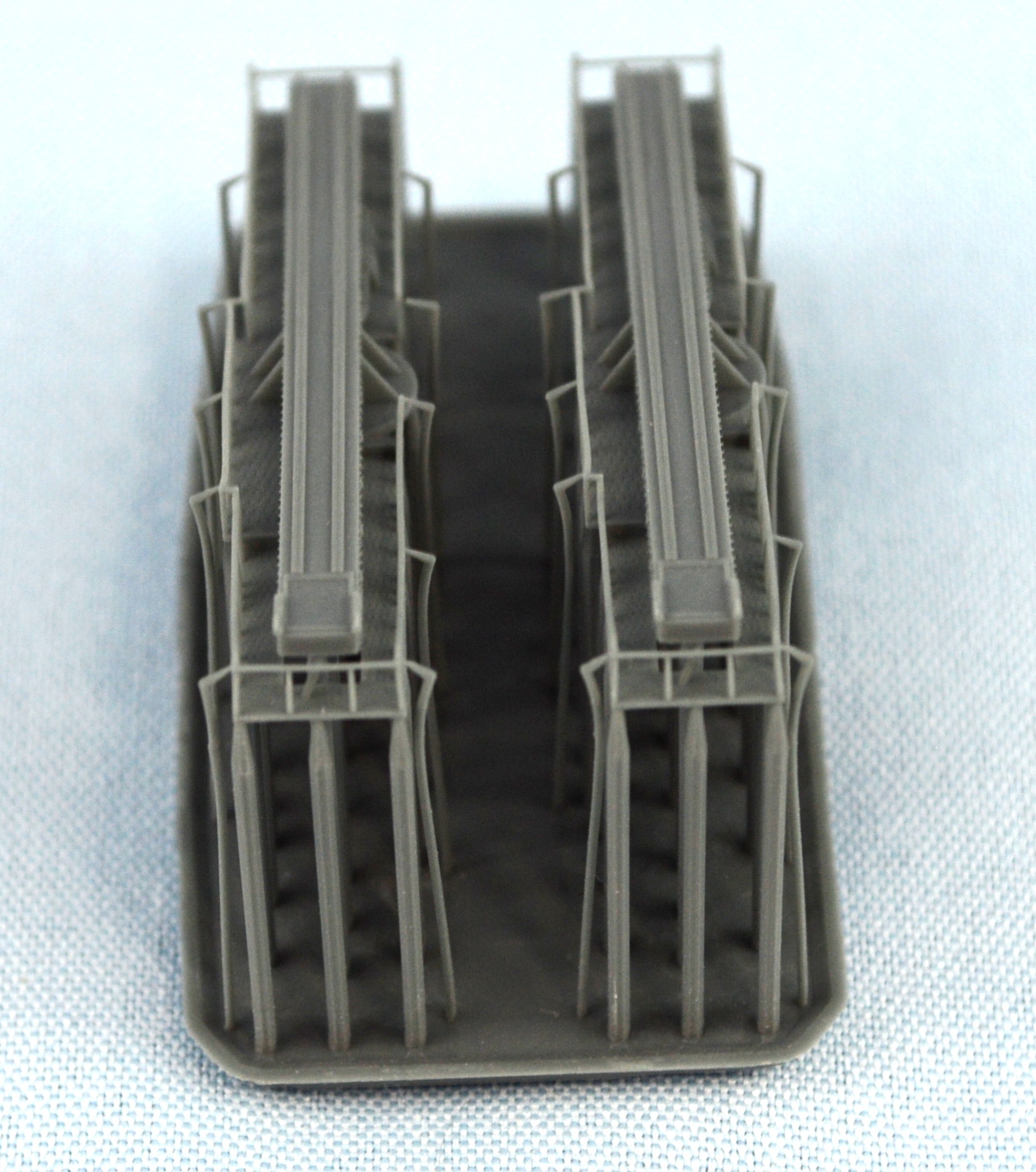 There are two catapults per print raft. The details on these are very good - there are finely printed railings, tread plating and visible pistons on the sides of the catapults. The set only includes a pair of catapults - it does not include the pedestals, or floatplanes. |