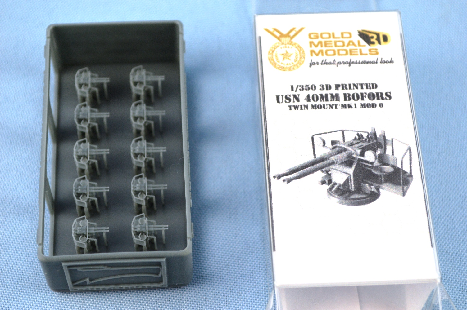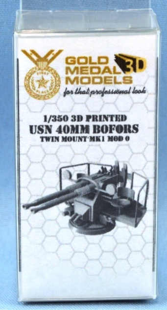 This is Gold Medal Models 1/350 USN 40mm Twin Bofors, Mk1 Mod 0, set GM3D350030. The set retails for $18.99 USD, and is available directly from Squadron Hobbies - who I'd like to thank for this review sample. Recommended! |