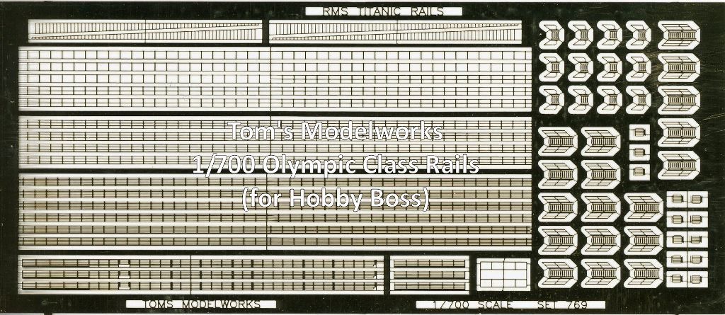 | Tom's Modelworks has released a photo-etch set of rails and inclined ladders for the famous Olympic-class liners in 1/700, Set 7119 Olympic Rails, Hobby Boss. | ||||||||||