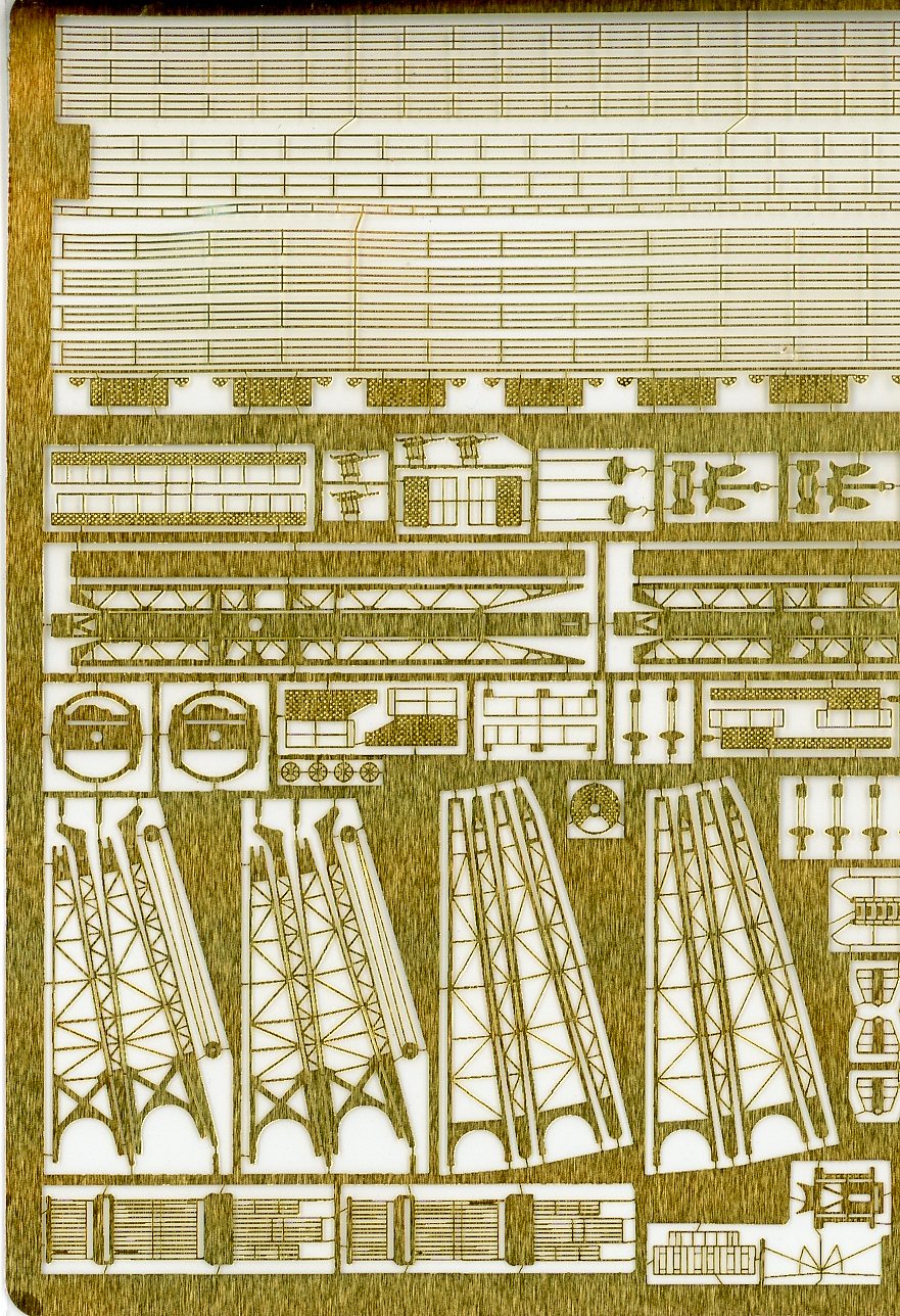 Everything is very finely etched, with nice details. The cranes and the platforms for the mast are especially well done. Go easy on the paint, or you will clog the fine mesh on some of the parts. My only comment is, that given the proliferation of 3D printed parts, I would have omitted the 20mm guns, but that is a nit-pick. |