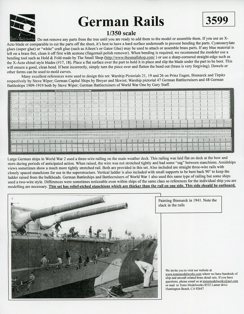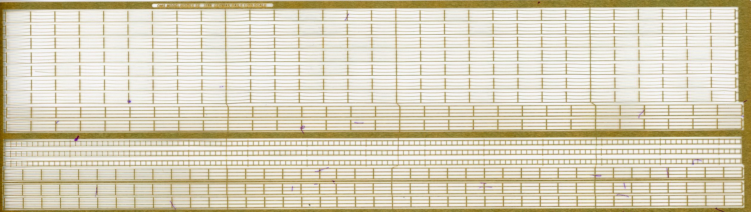 drooped chains As with set 3599, on one side of the fret, the stanchions are relief etched. Make sure you have that side of the fret installed facing out on your model! |