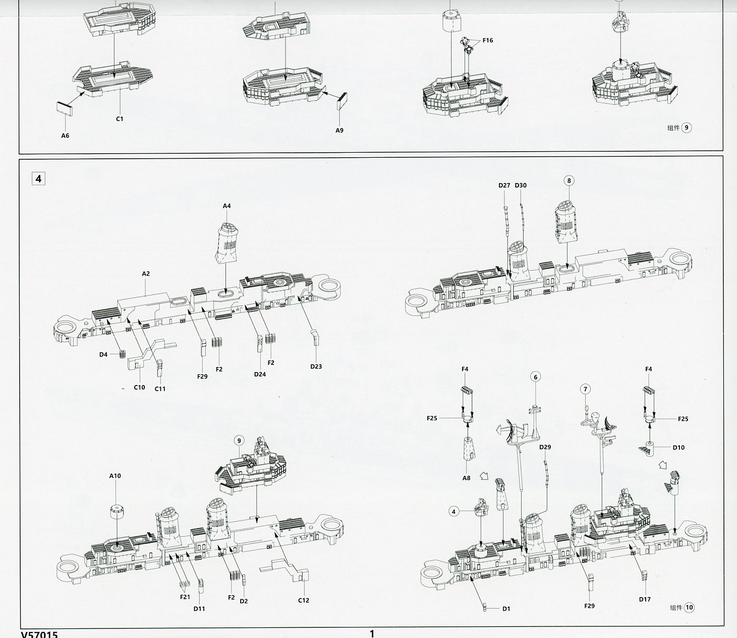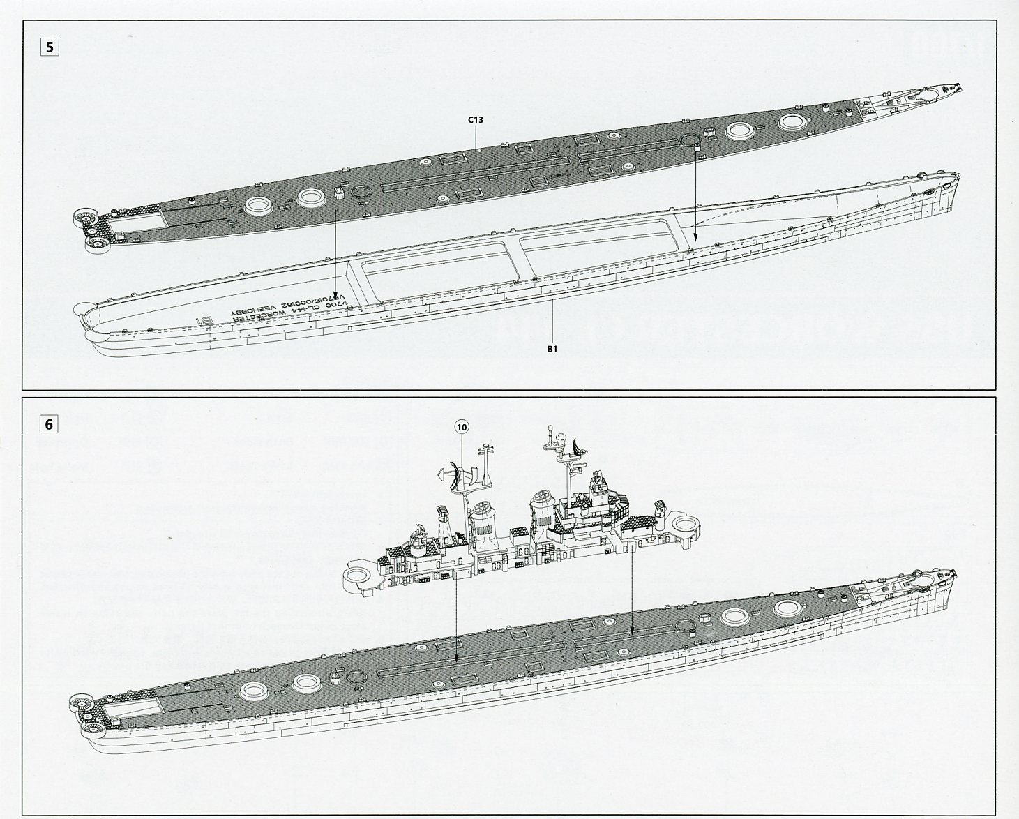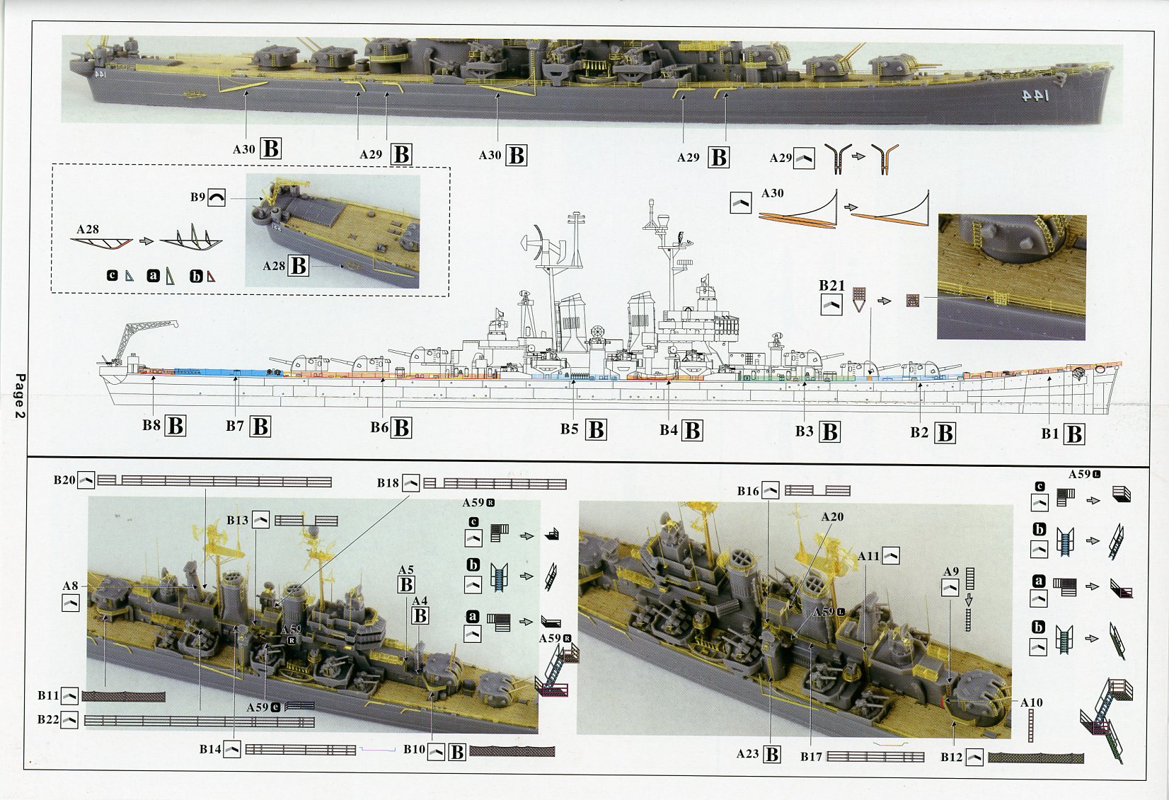 D has radars, gun shields, the hangar roof, cranes, and piping for the