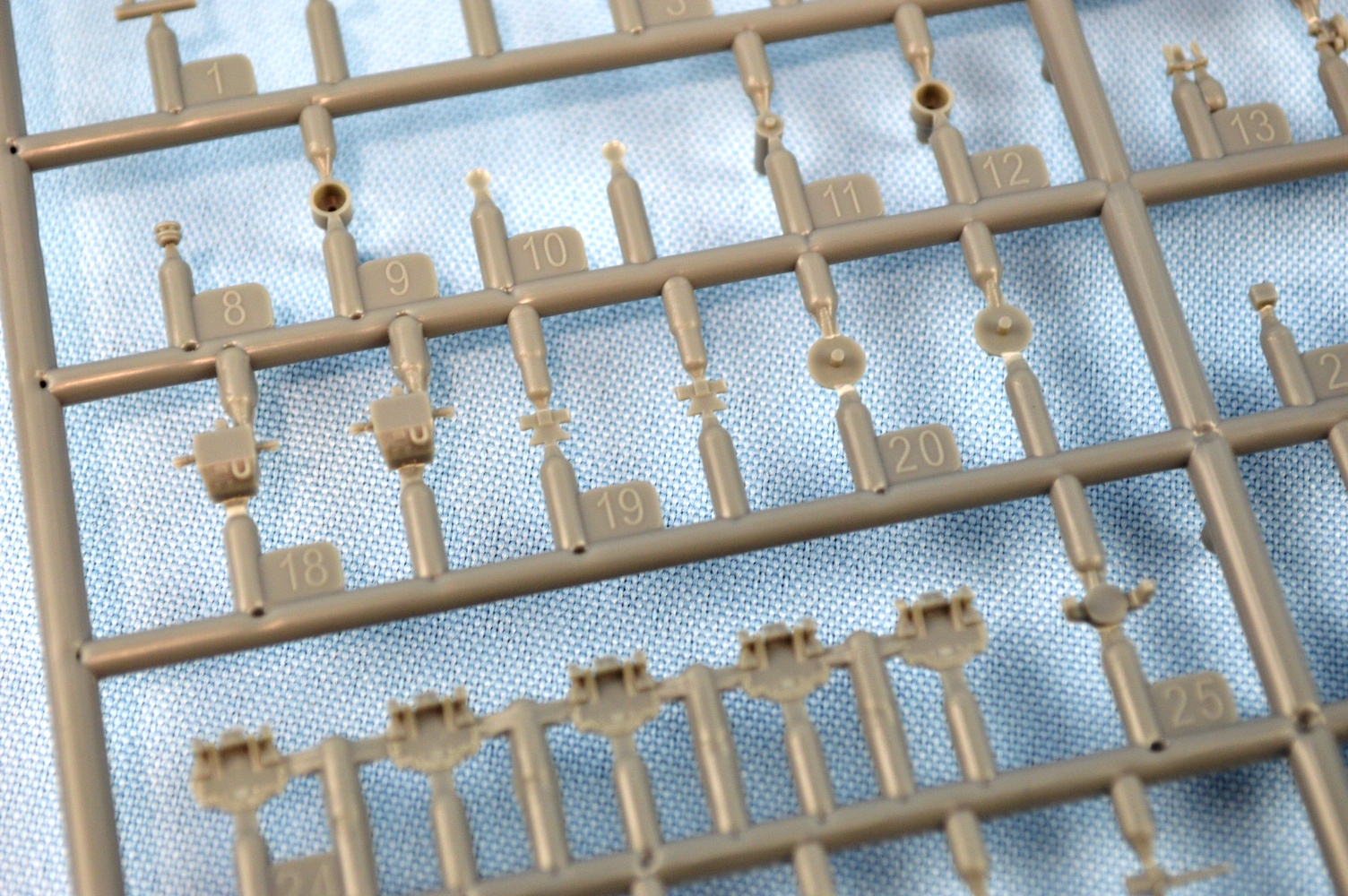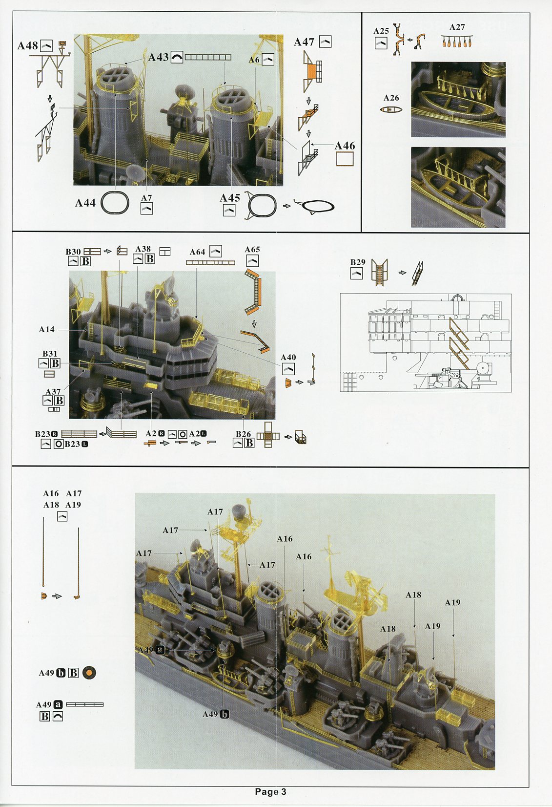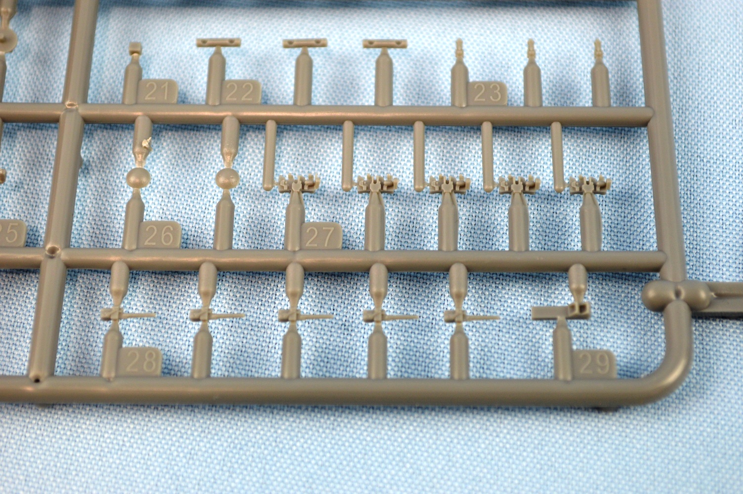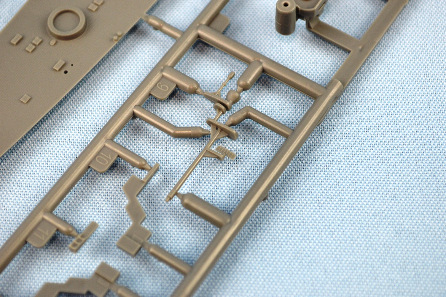 | Two brass mast and turned brass barrels for the main battery armament are included. These are huge improvement of the kits parts. | |||||||||||||