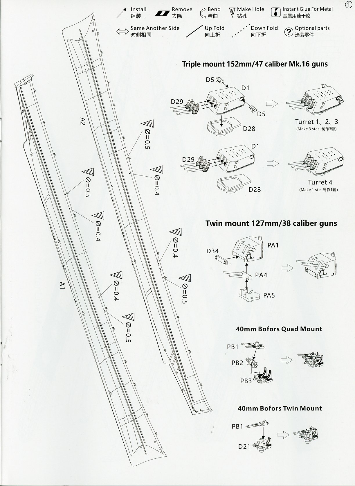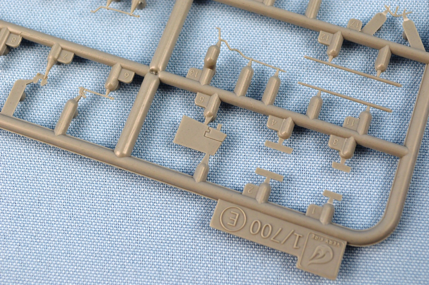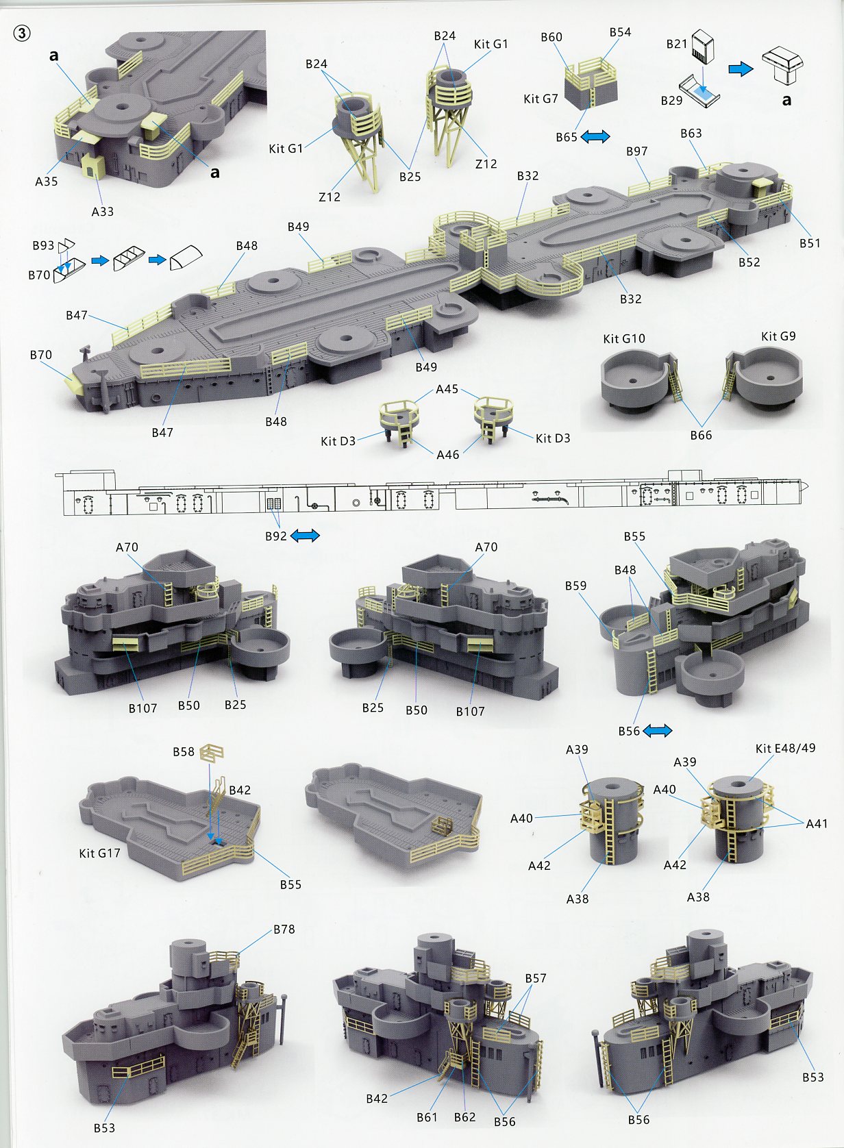 barbettes (also 2 parts) for turrets 2 & 3, cranes, flag bags, directors,