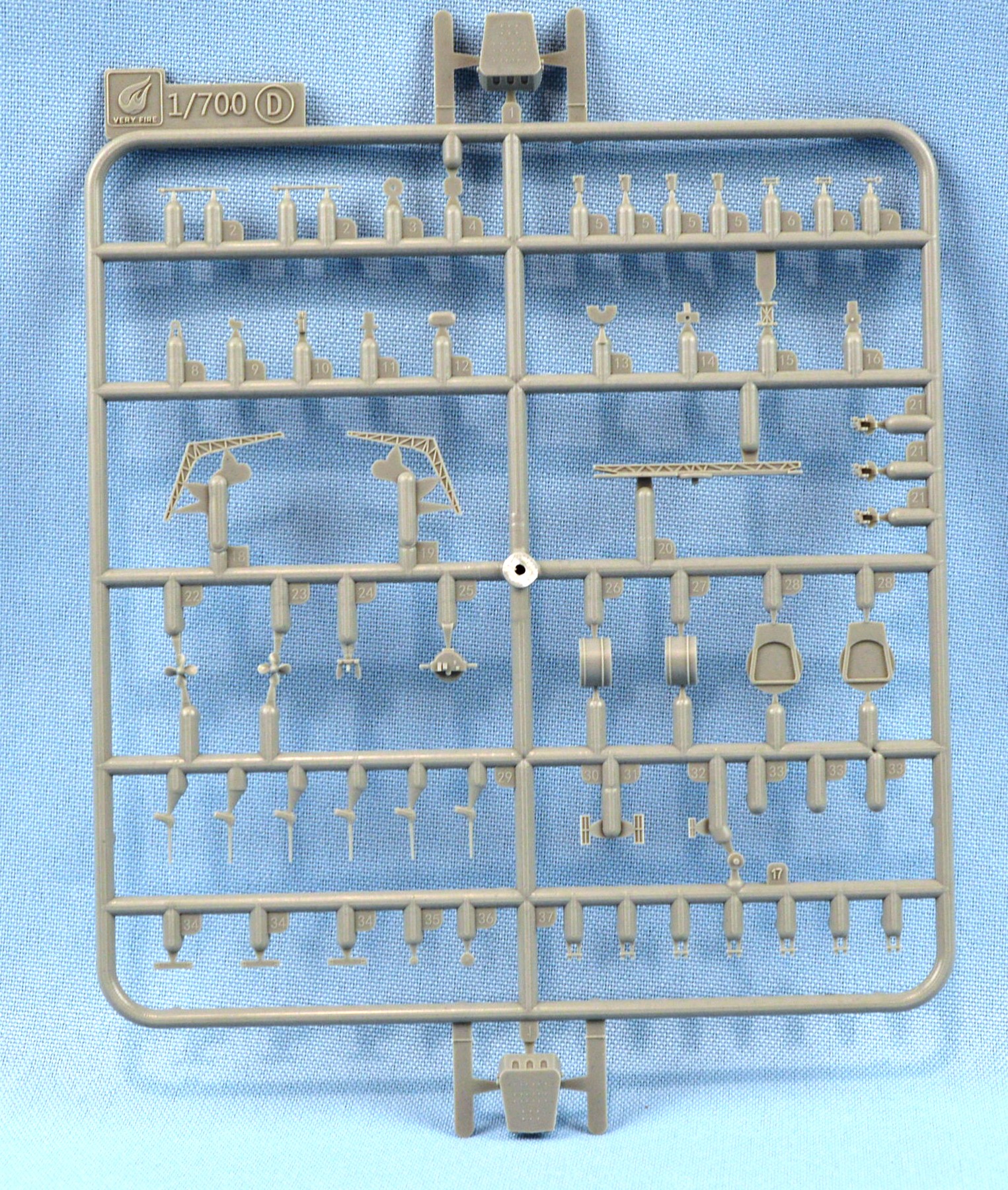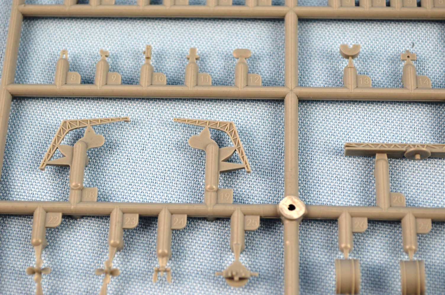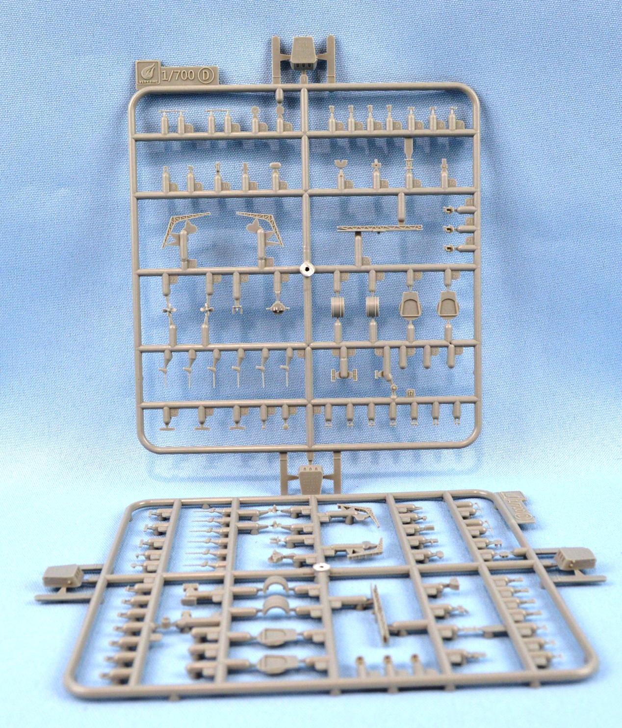 (again, 2 parts), hangar roof, struts, shafts, rudder, radars, prop guards