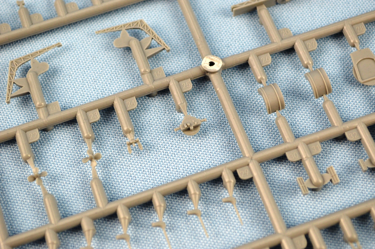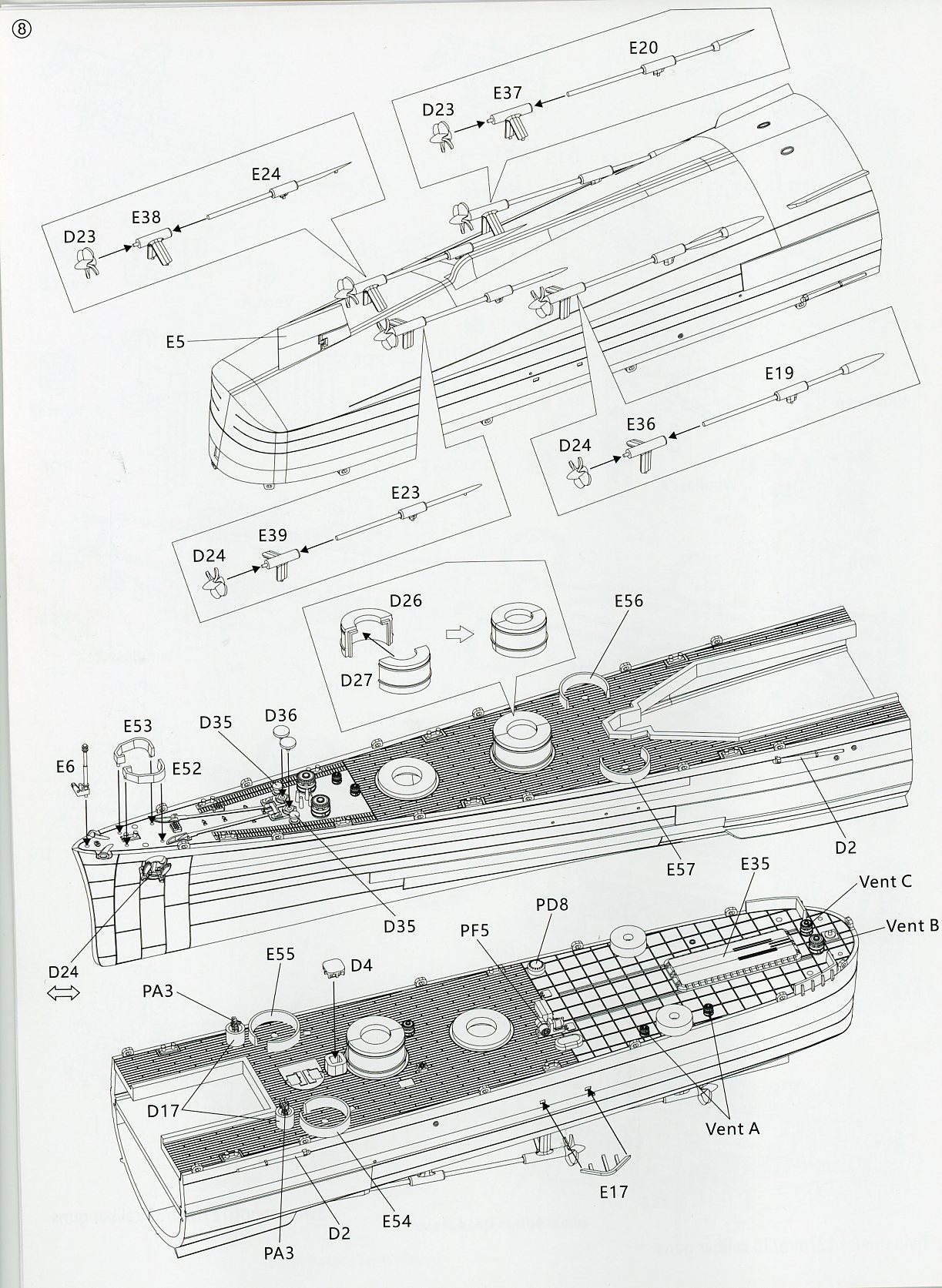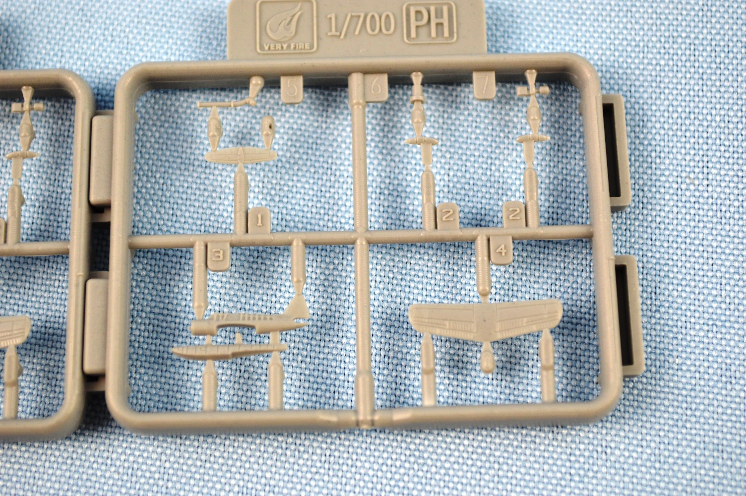 (again, 2 parts), hangar roof, struts, shafts, rudder, radars, prop guards