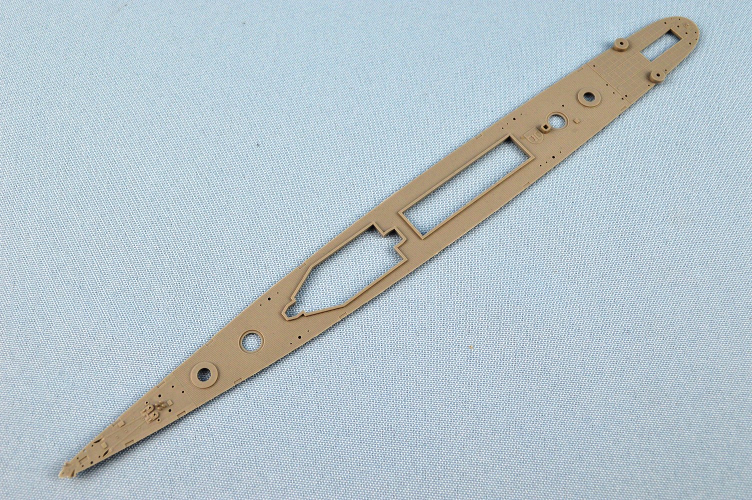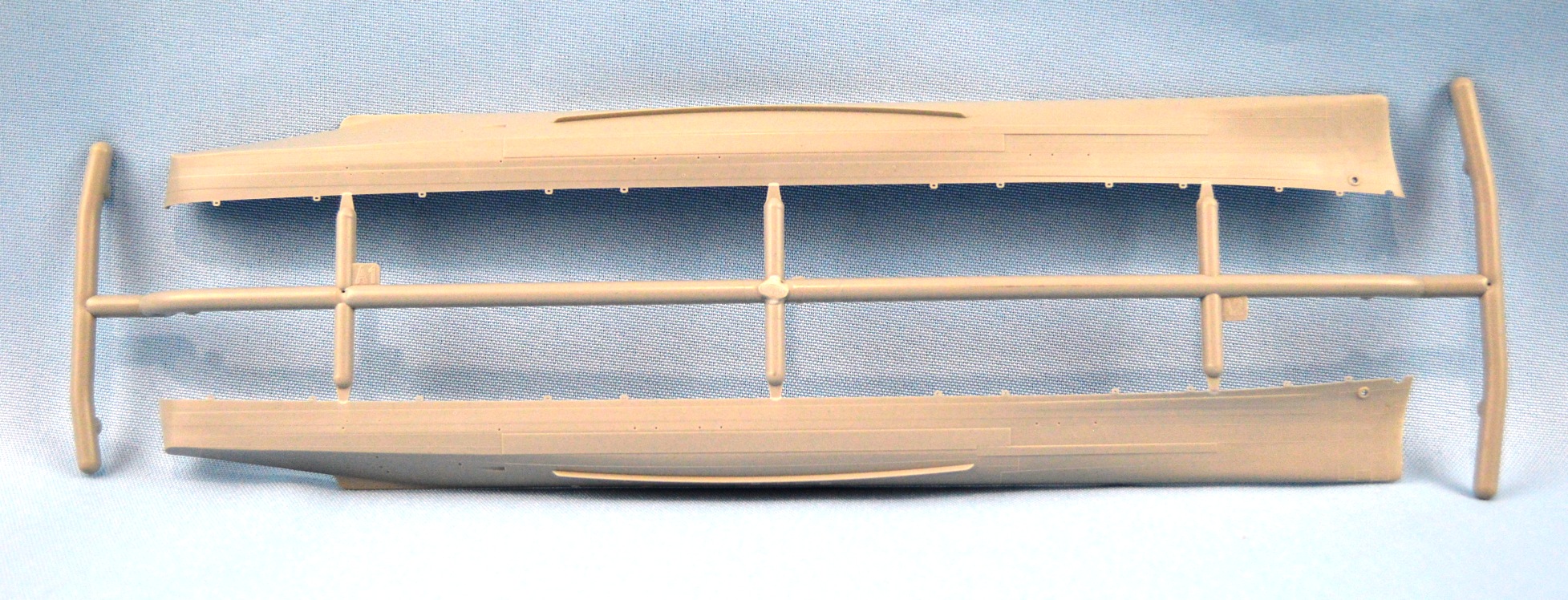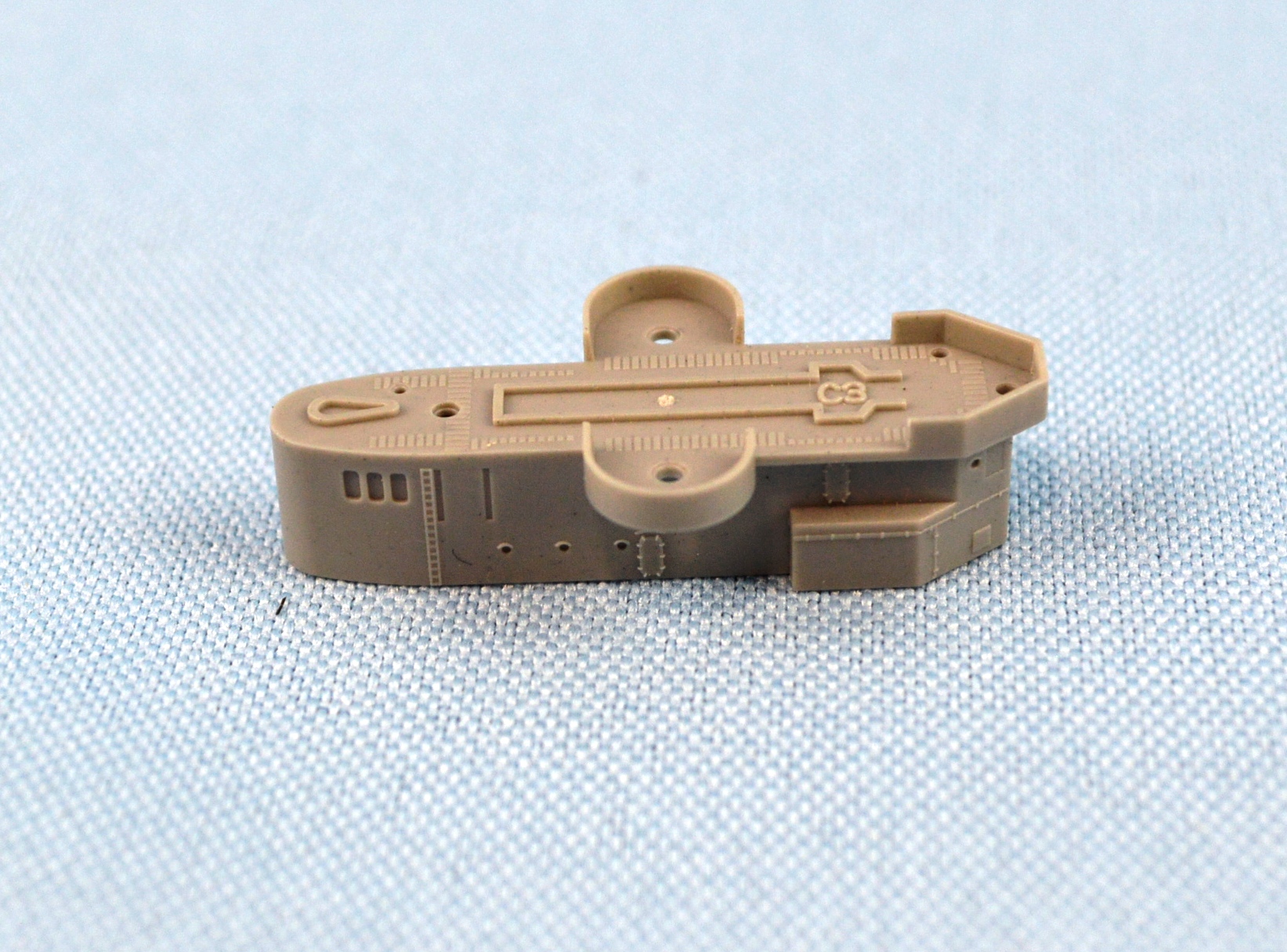 bilge keels and chocks molded to the sides of the hull. The model