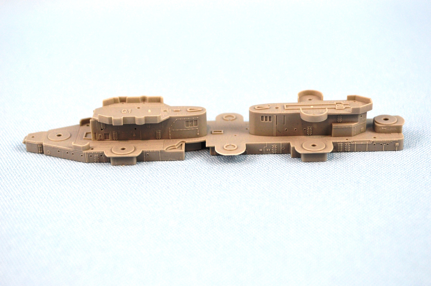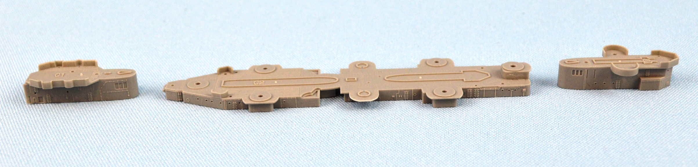 C1 - Forward superstructure base. This has non-skid deck pads molded integral to the deck. These aren't too bad. There is also nice details on the bulkheads C2 - Central 01 level. Move non-skid, planking, and overall good detail C3 - After superstructure. Same comments as above |