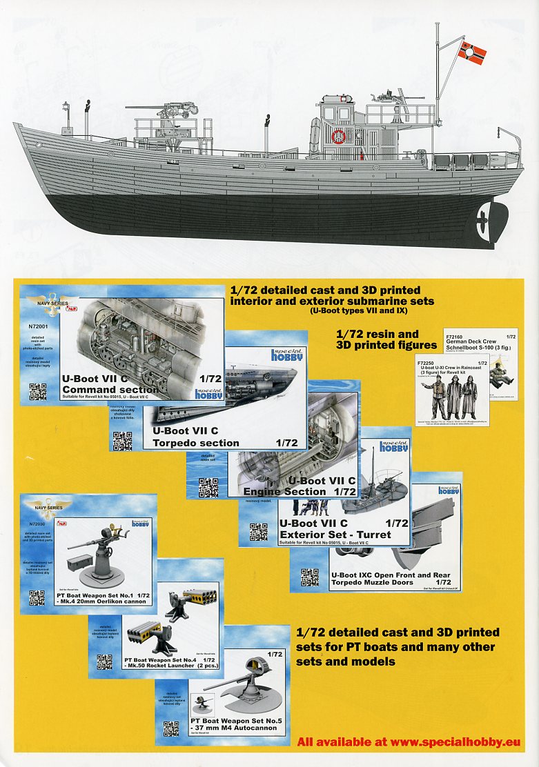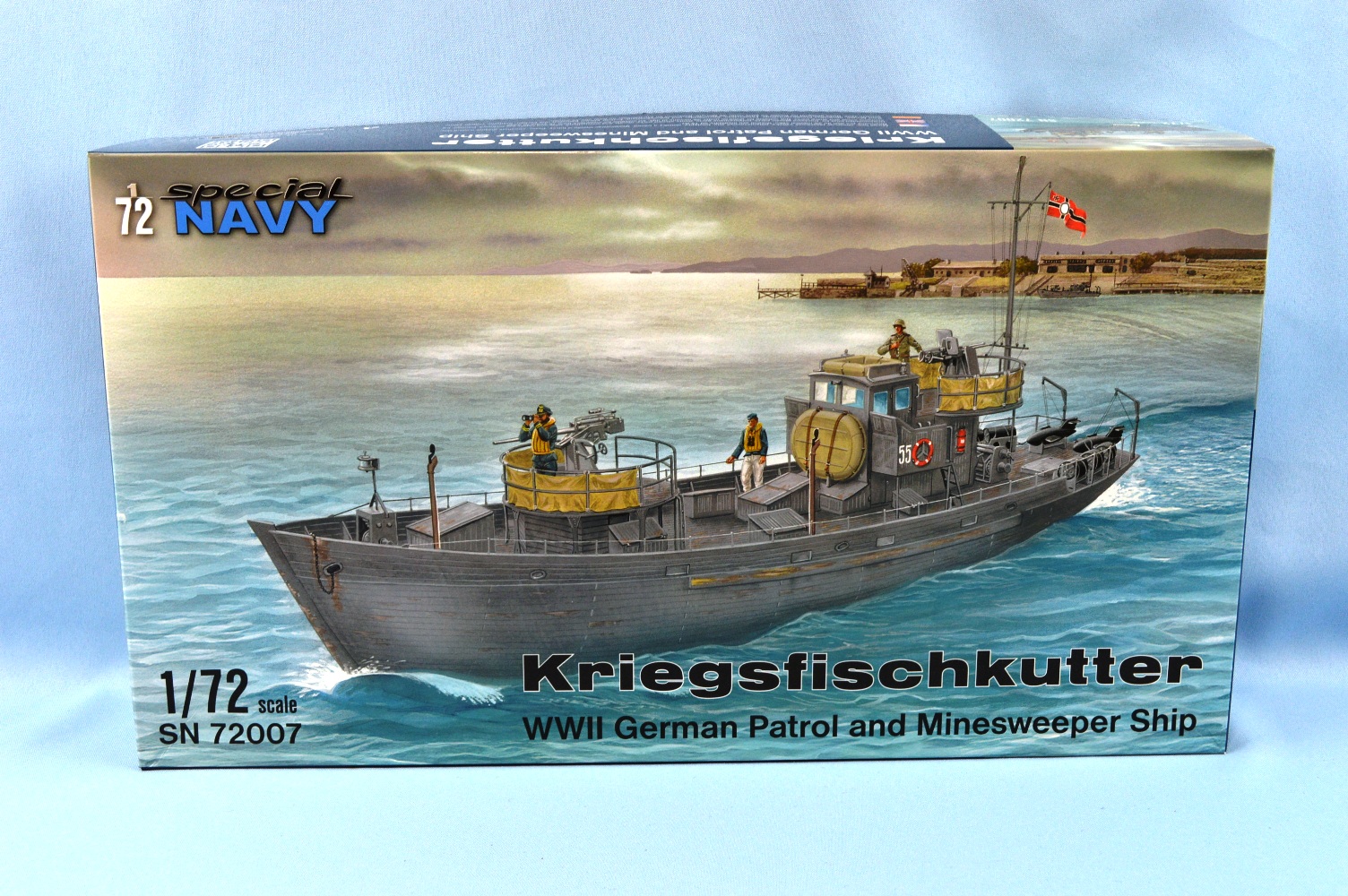 This Special Navy's 1:72 Kriegsfischkutter WW2 German Patrol and Minesweeper Ship, kit number SPN72007. It retails for $92.99 USD, and is available through Squadron Hobbies, who I'd like to thank for this review sample. |
