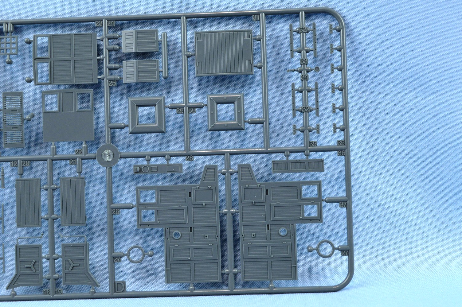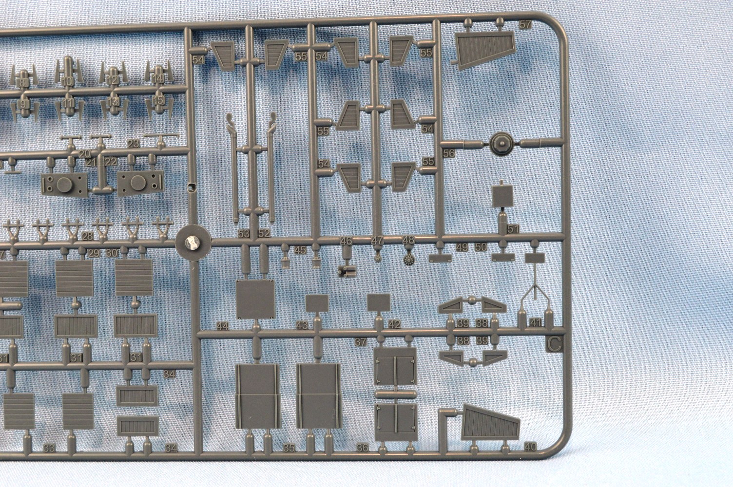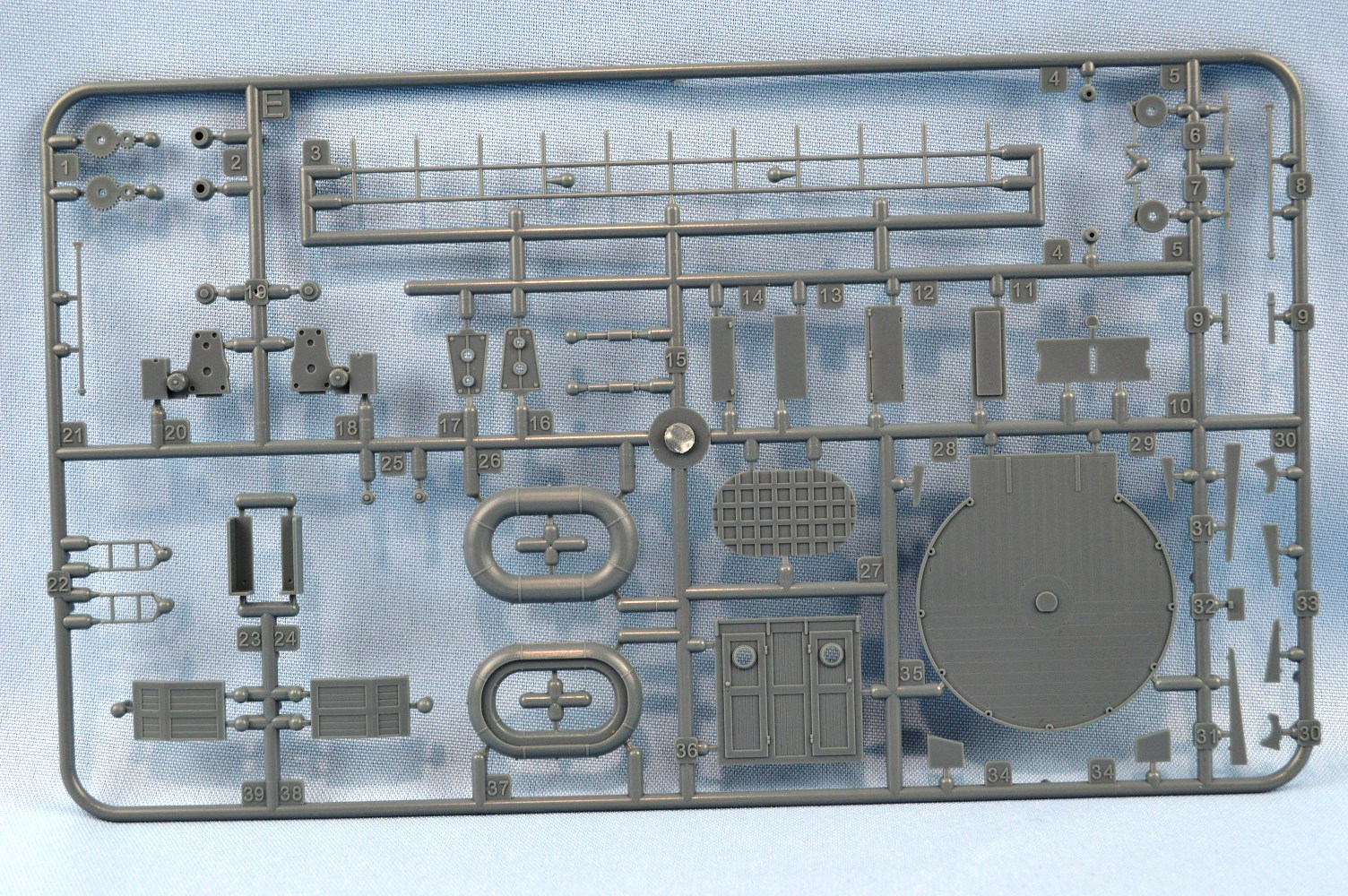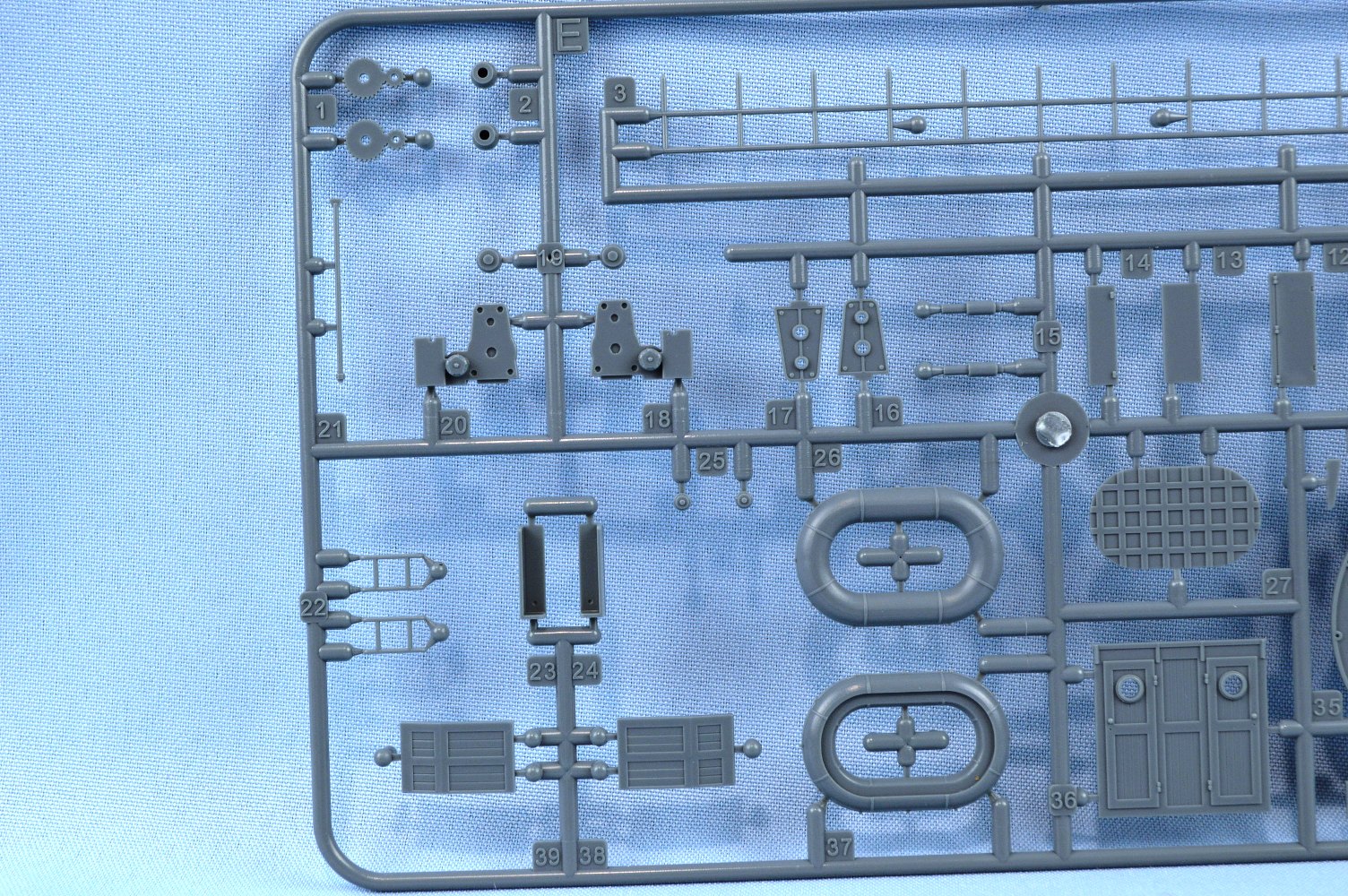 | This sprue has various small deck hatches. There is nice planking detail on the parts. | ||||||