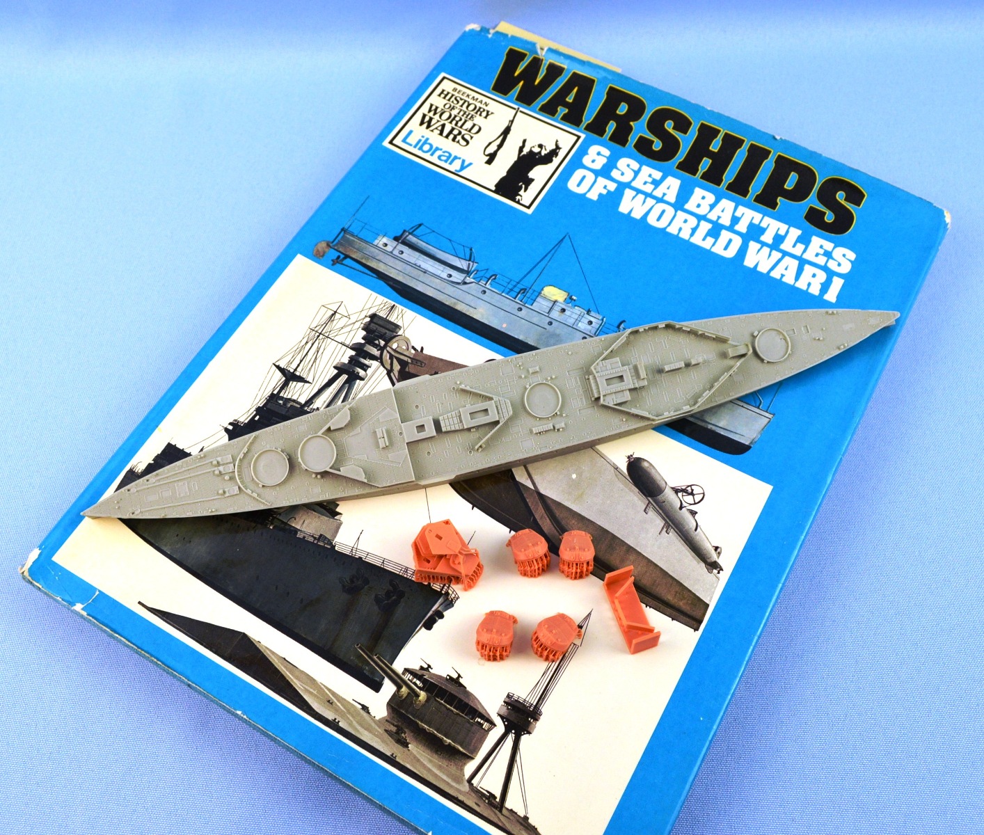 I've been a fan of all things "battlecruiser" since the early 1970's, when my parents bought me "Warships and Sea Battles of World War I" from a mall bookstore one night. I spent hours going through this book, look at the drawings and photos, and instantly became hooked by the allure of the battlecruiser. So I was interested when Triumph Model announced a 1/700 HMS Lion, and even more pleased when they agreed to provide this review sample. According to the instructions, this model of Lion can be built as a either a 1914 or 1916 version. The kit comes in a sturdy box with dramatic artwork of Lion at speed on the top, and 3D renderings and information on the side. The boxing of this kit is very professional, akin to other mainstream manufacturers, and not one typical of a secondary or cottage industry release. Inside the box, the model is protected by a foam insert with multiple pockets, covered by a foam top. Laying on top of the foam lid are the instructions and the photo-etch. Upon removal of the instructions, PE and foam lid, you'll find a the hull, which is also wrapped in bubble wrap, inside the largest pocket, while the rest of the parts - all 3D printed - are in the other pockets. The smaller parts are either wrapped in bubble wrap or plastic bags. |