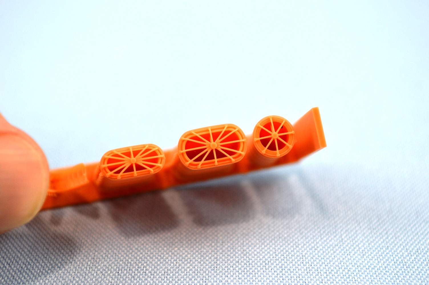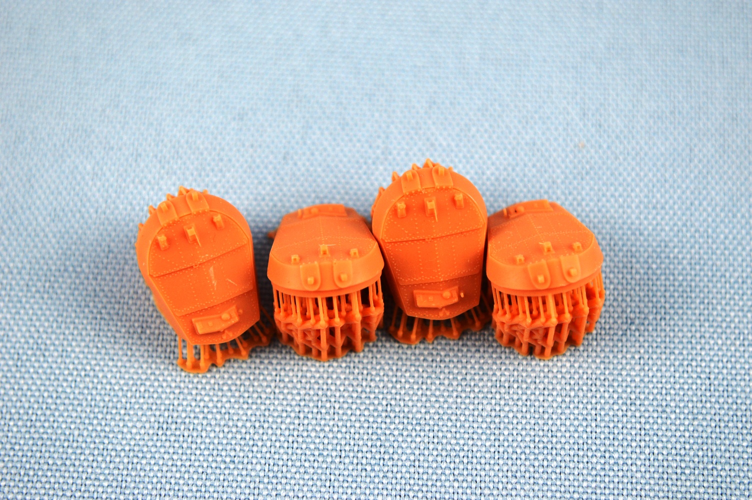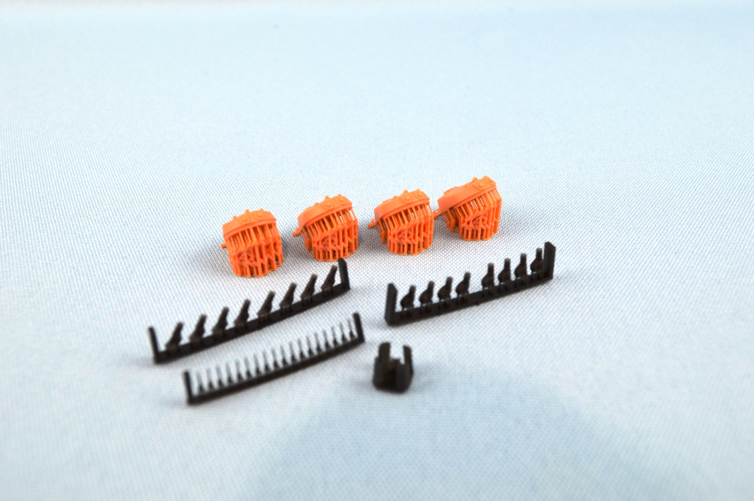| The rest of the parts - outside the brass - are all 3D printed, spread across 35 print rafts of various sizes. Some are printed in a horrid orange color, while most are printed in black. Details are generally very well done across all the parts. | |||||||||||||||||||||||||||||||||||||