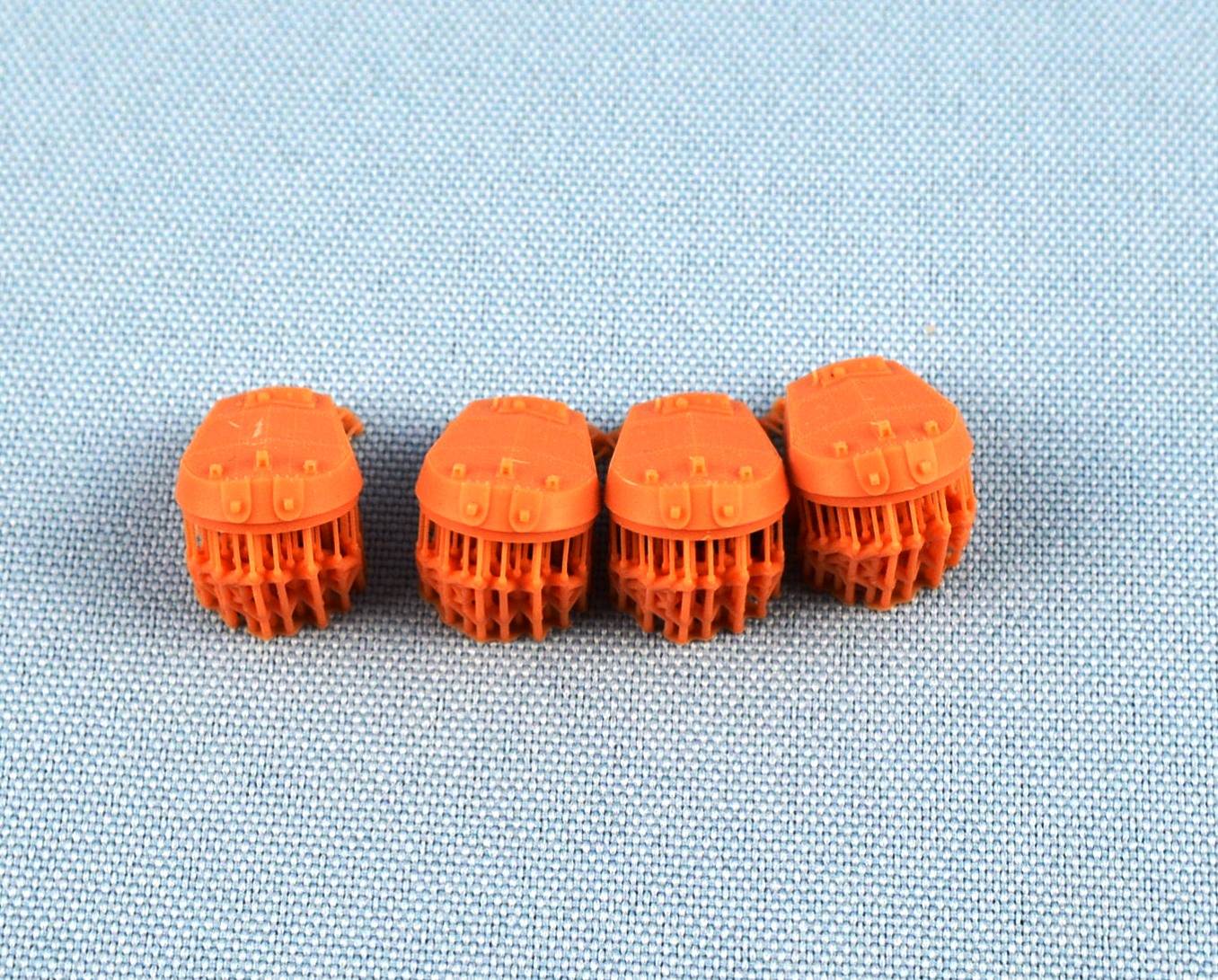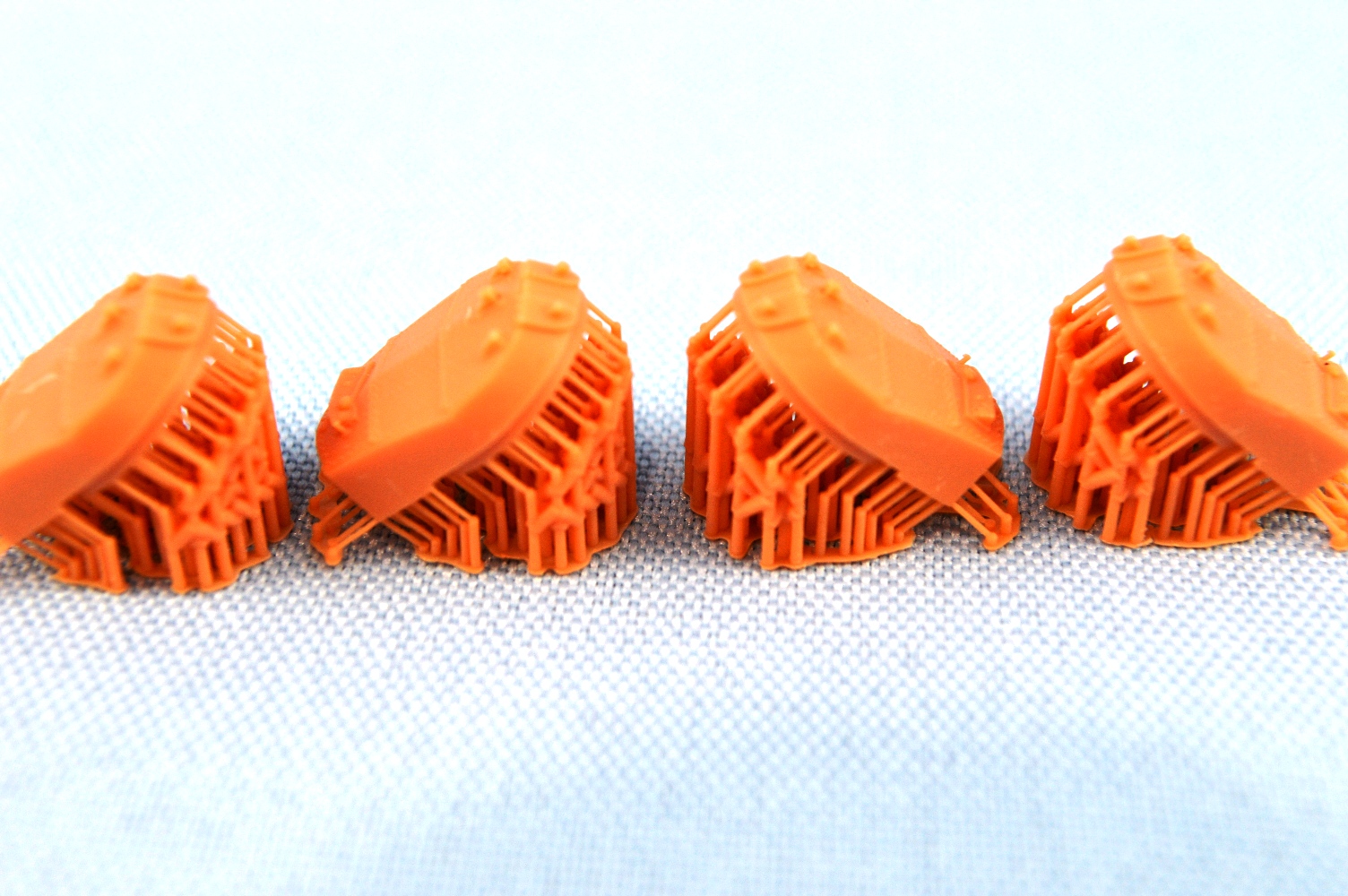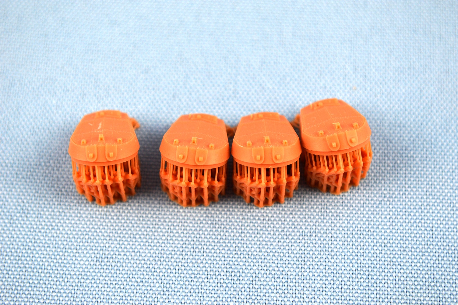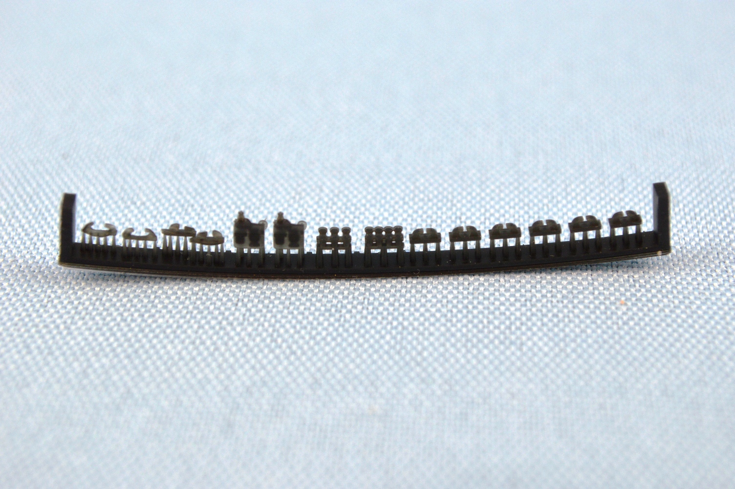 | The rest of the parts - outside the brass - are all 3D printed, spread across 35 print rafts of various sizes. Some are printed in a horrid orange color, while most are printed in black. Details are generally very well done across all the parts. | |||||||||||||||||||||||||||||||||||||
