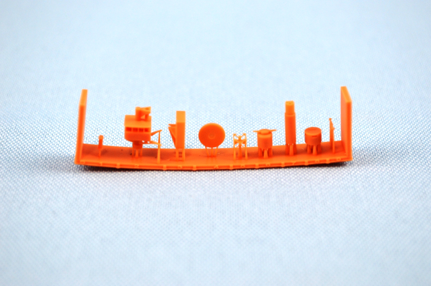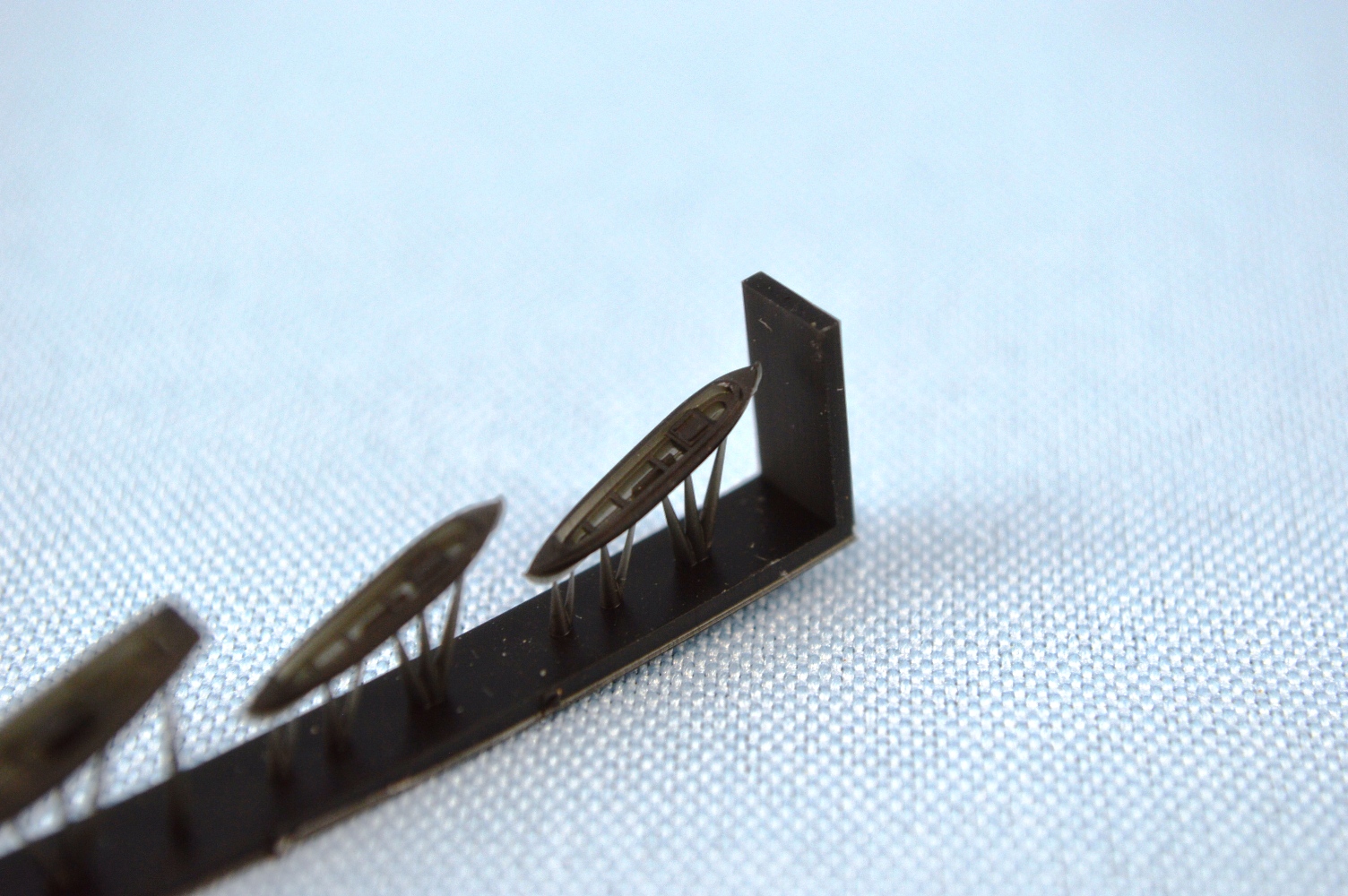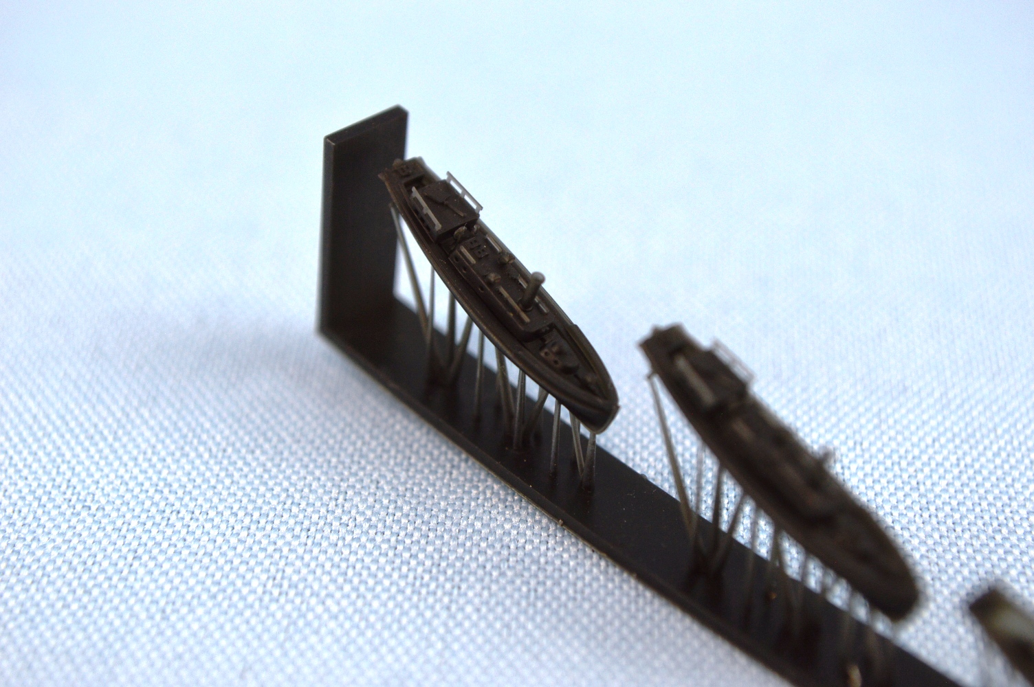 | There are two print rafts, each holding four ships boats. Details are nicely done, with fine rails on the tops of the cabins of the powered boats, and decking detail on the decks of some of the other boats. Some of these are printed some finely that the sides of some the hulls are translucent. | |||||||||||||||||||||||||||||||||||||