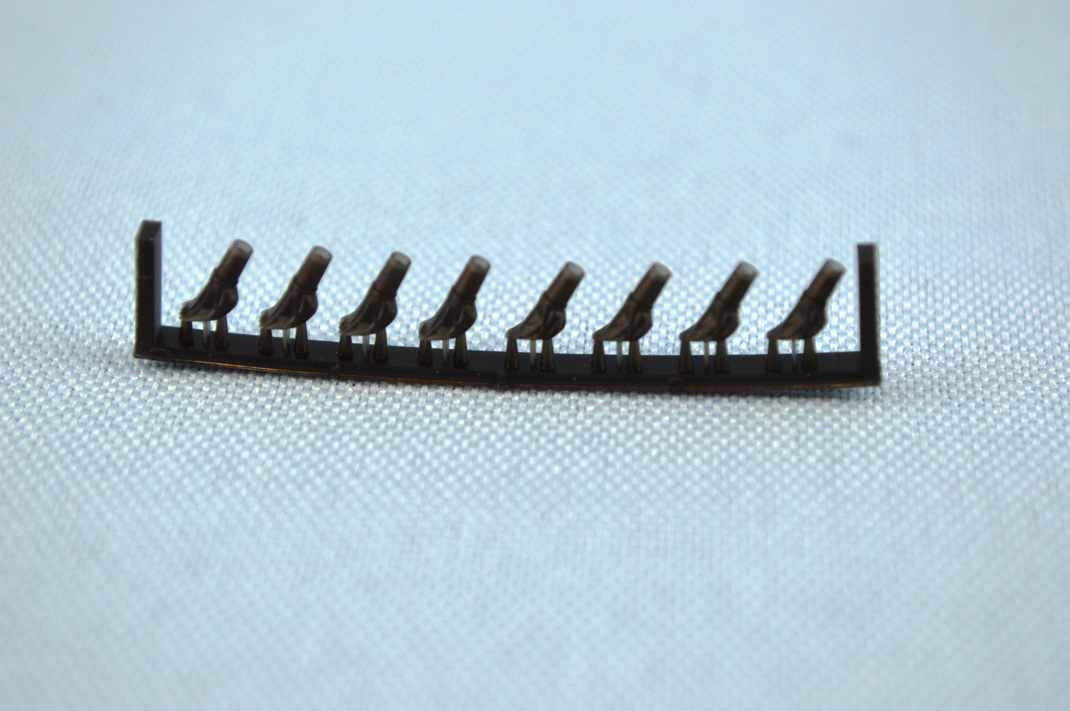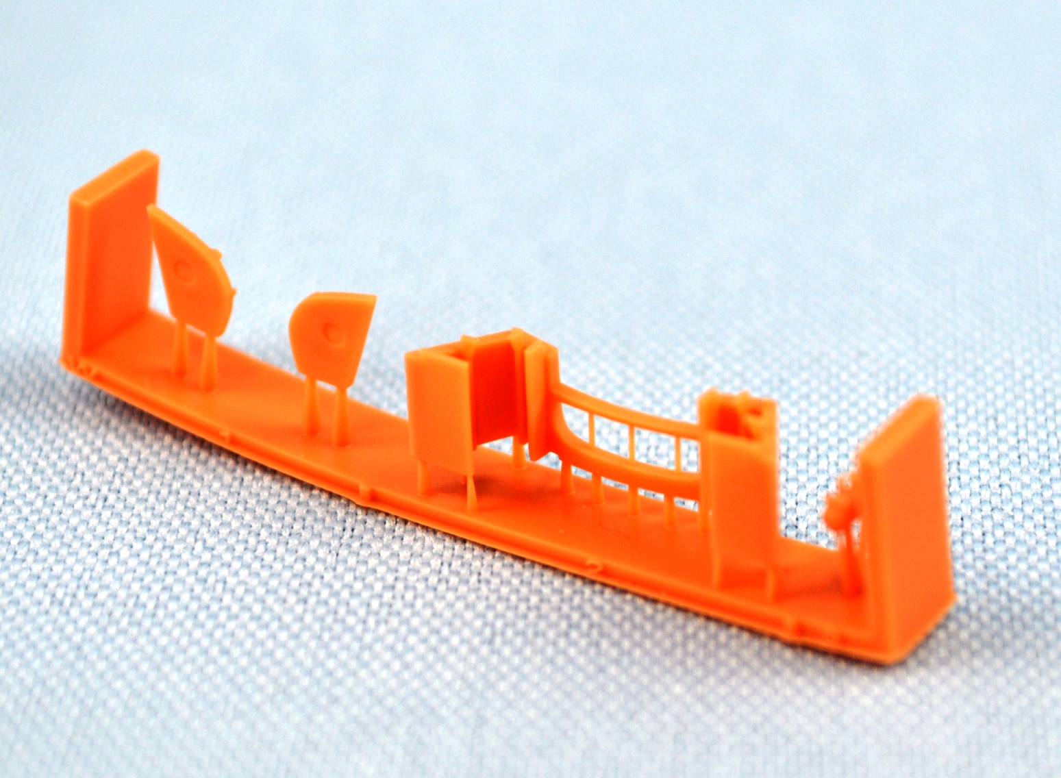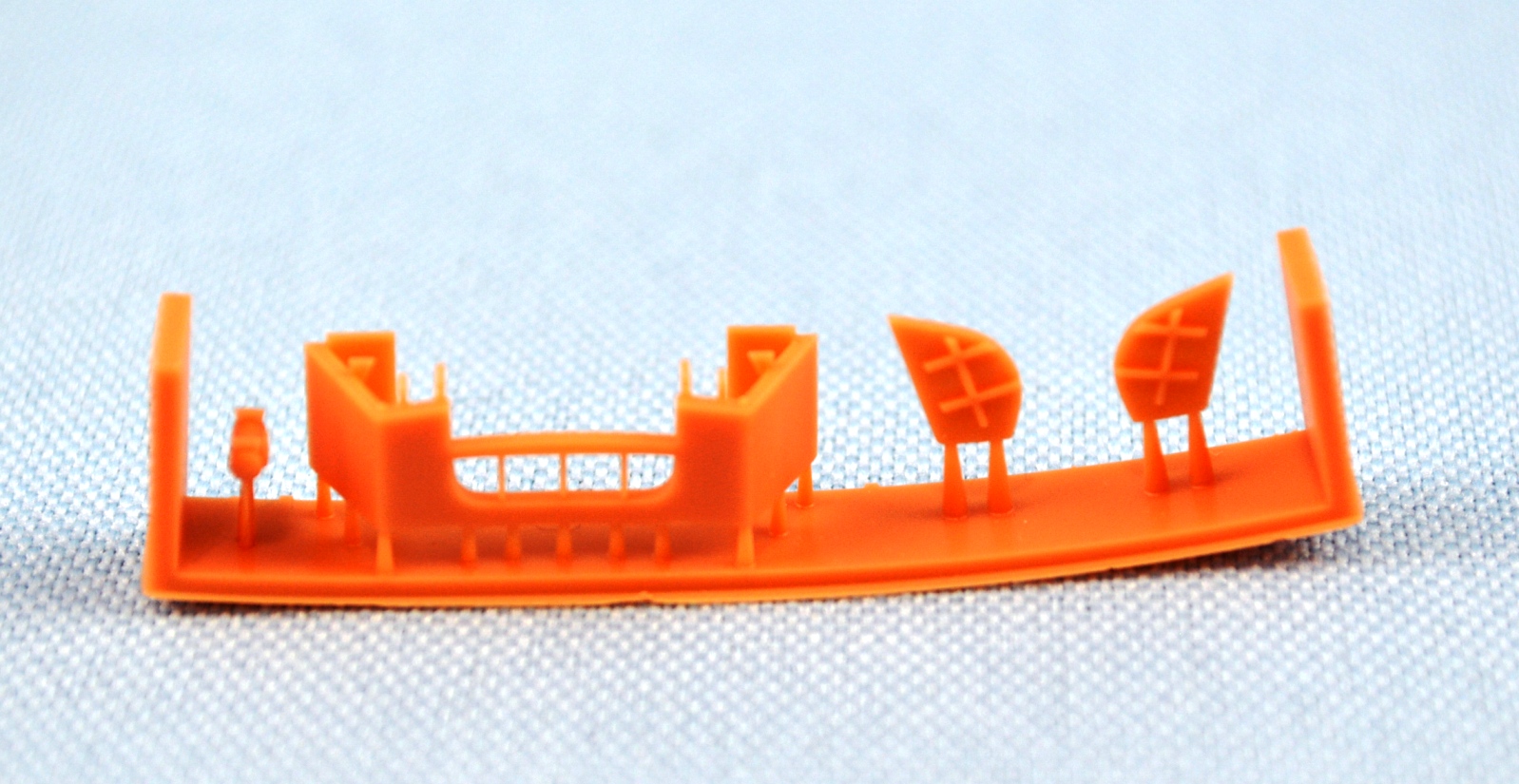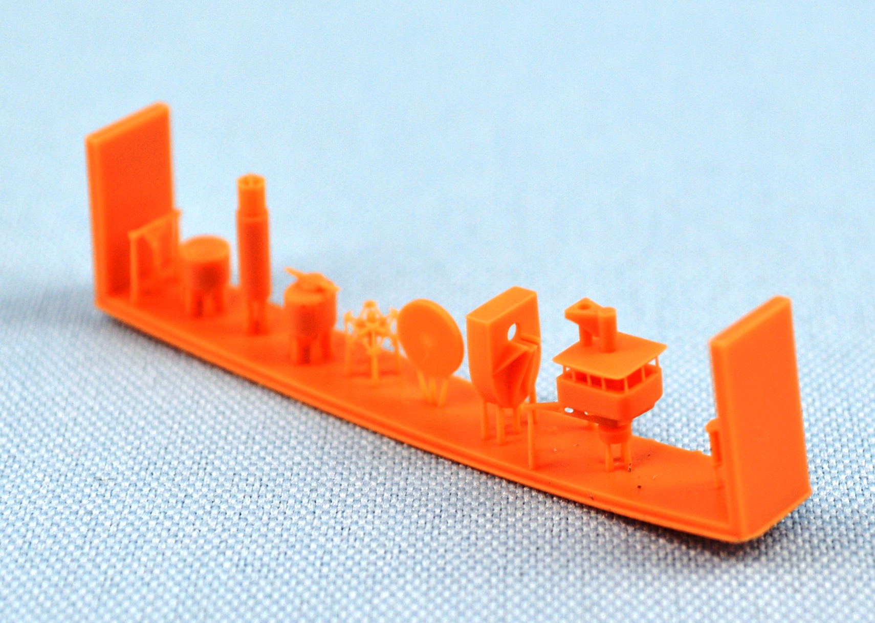 | There are two print rafts, each holding four ships boats. Details are nicely done, with fine rails on the tops of the cabins of the powered boats, and decking detail on the decks of some of the other boats. Some of these are printed some finely that the sides of some the hulls are translucent. | |||||||||||||||||||||||||||||||||||||