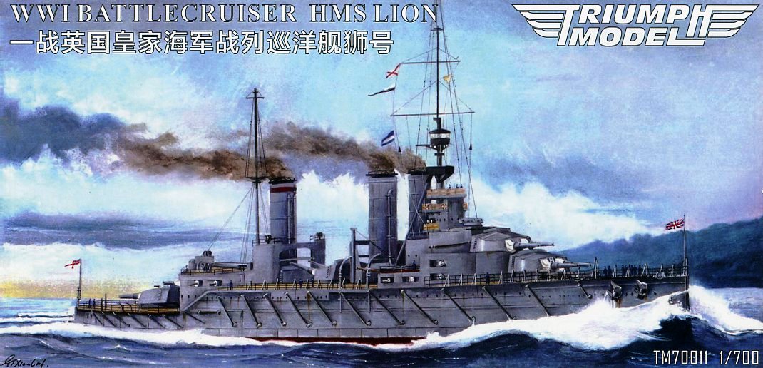 Lion served as the flagship of the Grand Fleet's battlecruisers throughout World War I, except when she was being refitted or under repair. She sank the German light cruiser Köln during the Battle of Heligoland Bight and served as Vice-Admiral David Beatty's flagship at the Battles of Dogger Bank and Jutland. She was so badly damaged at the first of these battles that she had to be towed back to port and was under repair for more than two months. During the Battle of Jutland she suffered a serious propellant fire that could have destroyed the ship had it not been for the bravery of Royal Marine Major Francis Harvey, the gun turret commander, who posthumously received the Victoria Cross for having ordered the magazine flooded. The fire destroyed one gun turret which had to be removed for rebuilding while she was under repair for several months. She spent the rest of the war on uneventful patrols in the North Sea, although she did provide distant cover during the Second Battle of Heligoland Bight in 1917. She was put into reserve in 1920 and sold for scrap in 1924 under the terms of the Washington Naval Treaty. For more on the battlecruiser Lion, visit her Wikipedia page here, which is where this abridged history was pulled from. |