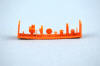 The three funnels are each a single part, with support ribs running horizontally around the funnels, separate piping running vertically and thinly printed funnel grates on top of each. The smaller forward funnel does not come with the option of the clinker screen and cowl that Lion was fitted with in 1918, to help reduce funnel gases hampering bridge operations. Curiously, there is a (nicely done) stern walk included on the same print raft as the funnel. Lion and Princess Royal, with their officers quarters moved amidships, had no such feature. So, I'm not sure why that is here, unless Triumph are planning to do a Queen Mary as a future release, as that ship did have a stern walk. However, her two forward funnels were a different shape than those of her sisters. Other "superstructure" related parts include bulkheads, spotting top, platforms, a searchlight/director tower and platform (what goes on this platform depends on what year you are depicting your Lion), jack and flag staffs, and davits for the ships boats that lie abreast of the forward funnel. |