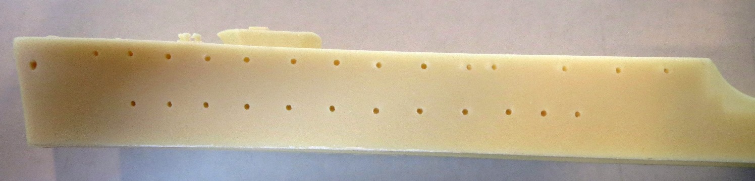 couple of large mushroom vents cast into it. The hull sides have numerous