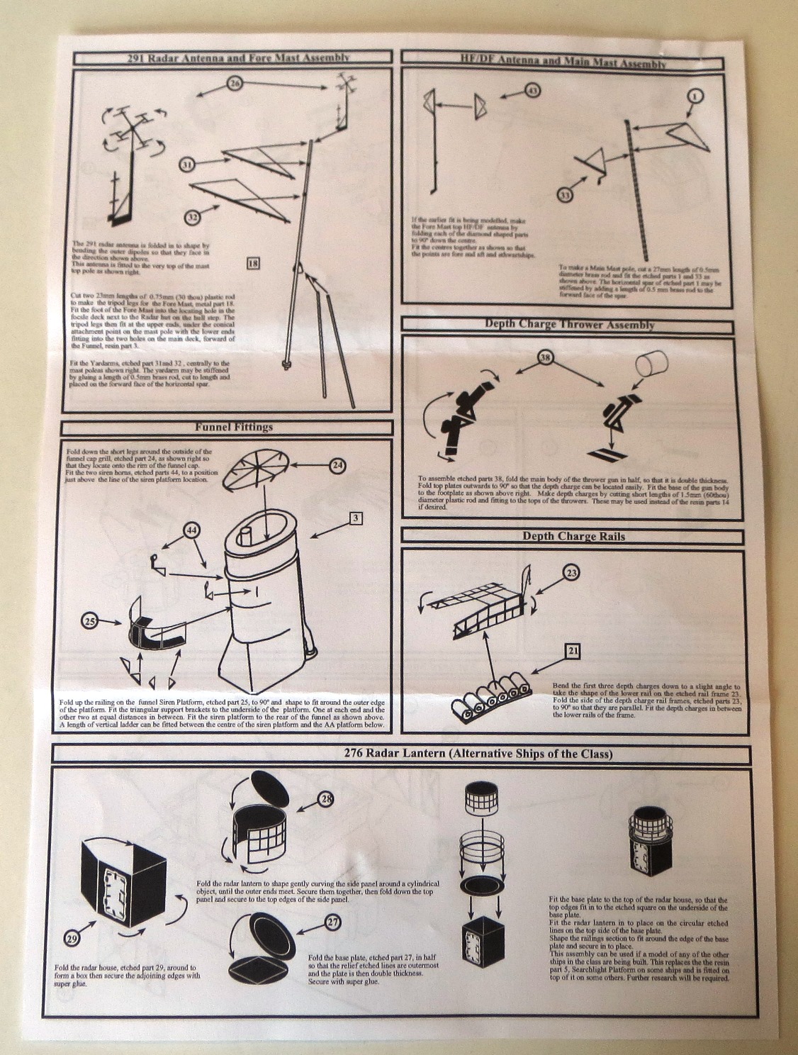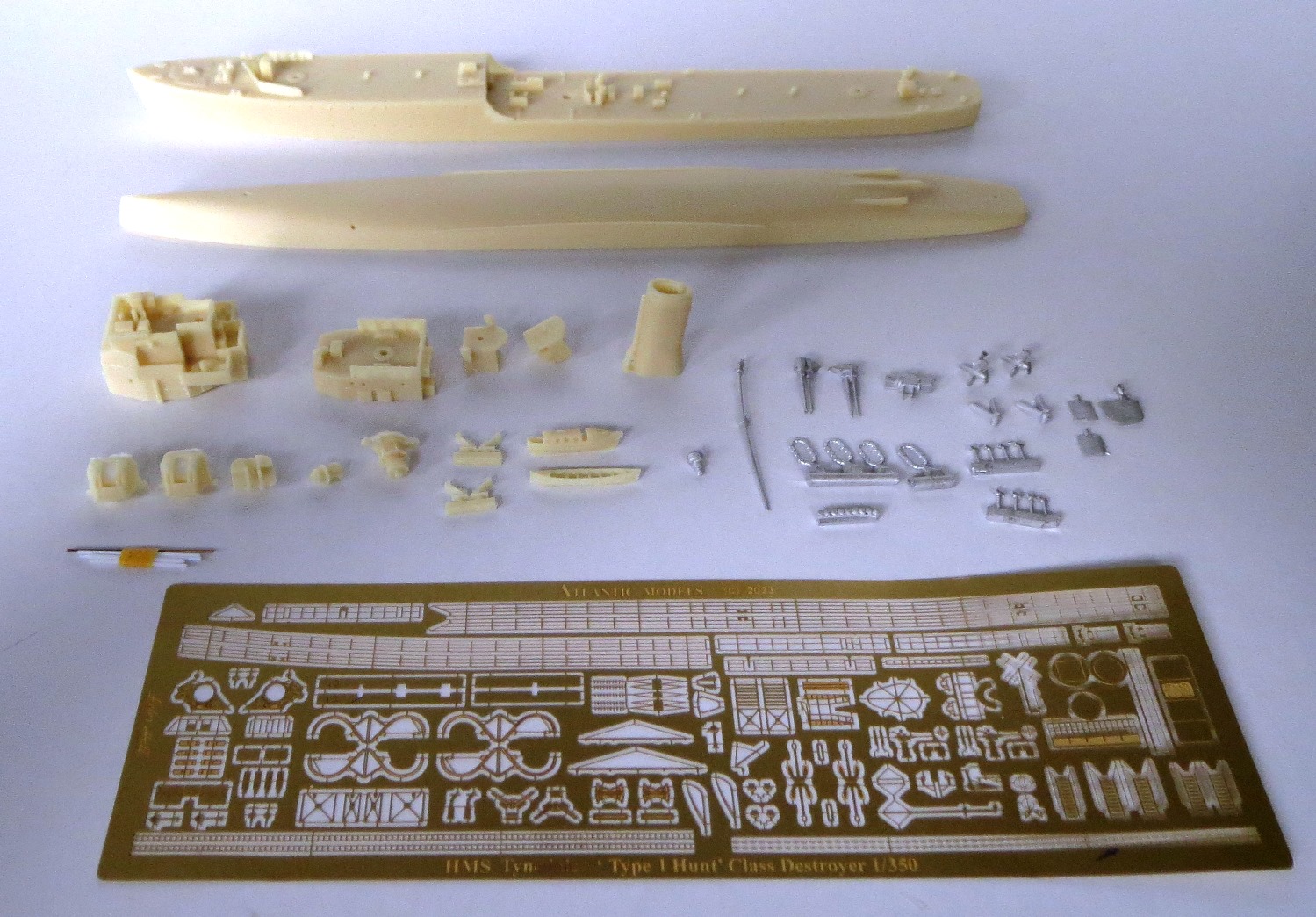 | This kit is a follow-up release to the HMS Badsworth Type II Hunt kit. The kit is typical of what you will get with an Atlantic Models kit, a mix of resin, white metal and photoetch parts. | |||||||||||||||