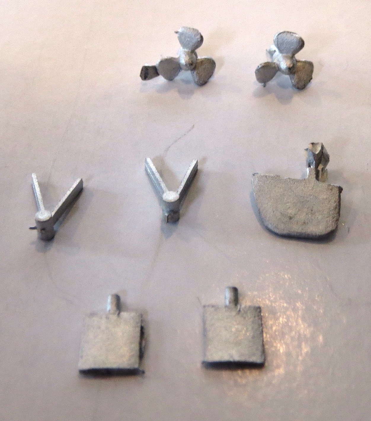 boat details, parts for the quad Pom Pom, anchors and chain, funnel cap