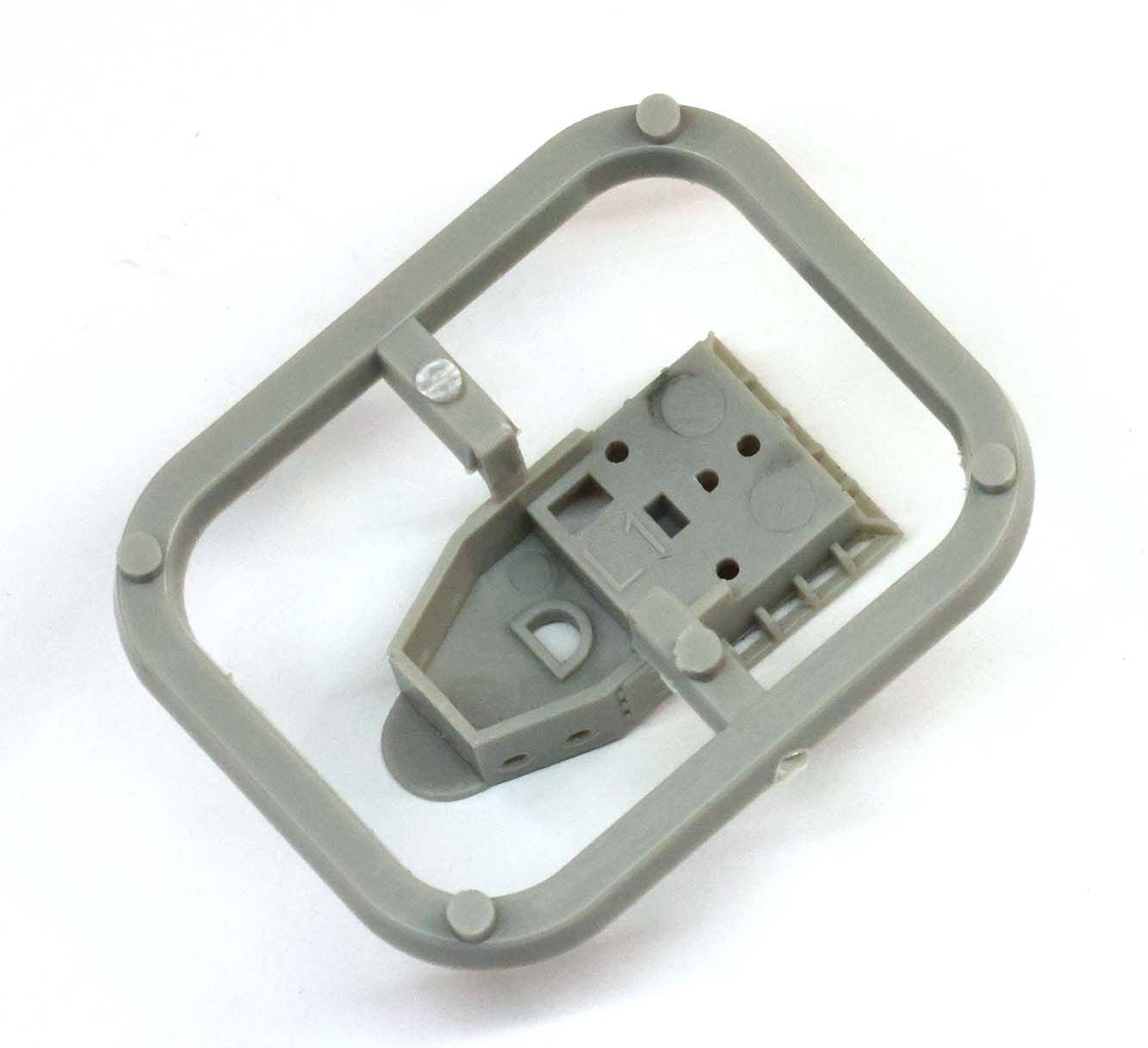 | The four individual pieces that make up the L "Tree" comprise the stack of platforms underneath the forward tripod. The pieces bounce around in order a bit, with L1 representing the top level Plotting Office enclosure & compass platform a half level above the Upper Bridge is piece L4. On my copy there were some slightly raised knocking pin marks on the bottom of the compass platform area that could affect fit to piece L4 below it, but sanding these down should be short work. The wind baffles on this level are hollow and completely in plastic - while not as thin as photo-etch they look decent. There is a raised spot underneath the venturi baffles where Royal Oak's crest was mounted that is nicely done, however there is no decal provided for the emblem itself. L4 below this level is the Upper Bridge platform and the structure for the lower bridge below. The lower bridge structure on the bottom of L4 is incorrect as far as I can tell from plans sourced from the National Maritime Museum in Greenwich. Trumpeter fills in more of the space behind a pair of windowed bulkheads than the plans show. This may not matter to most and will be mostly hidden if one installs the missing 9' range finders that are almost immediately outboard this extra structure from aftermarket sources. The structure in this area is all flat surfaces with simple edges so it should not be difficult to cut away and replace the incorrect bulkheads with sheet styrene for correct shapes. | |||||||||||||||||||||||||