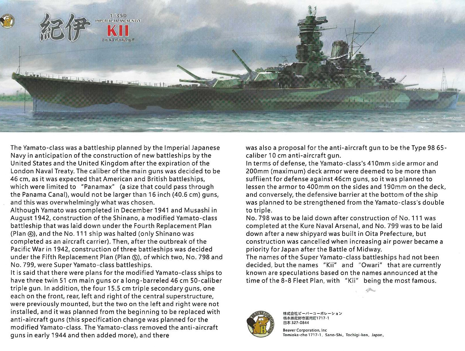 were made for one improved Yamato class battleship (Ship No.797),