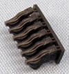 | A medium sized fret that carries trolley tracks for both the aircraft trolleys on the aircraft handling deck as well as the stored boats under it. There’s also treadways for the aircraft handling deck, cable reel frames, various window frames for several bridge decks and small frames to support signal lights on the bridge. While not laid out quite the same as the Yamato or Musashi fret, it certainly appears to have the identical pieces. |