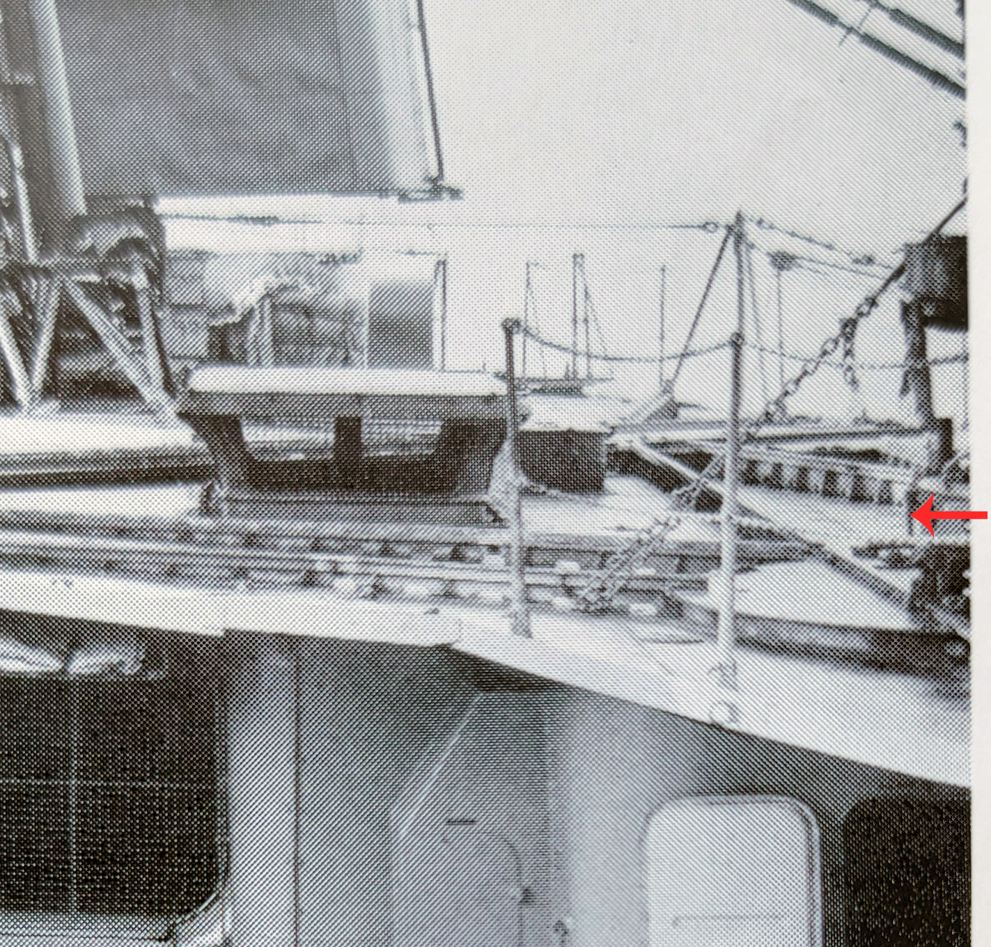 in the vicinity of the aftmost bank of torpedo tubes and again further