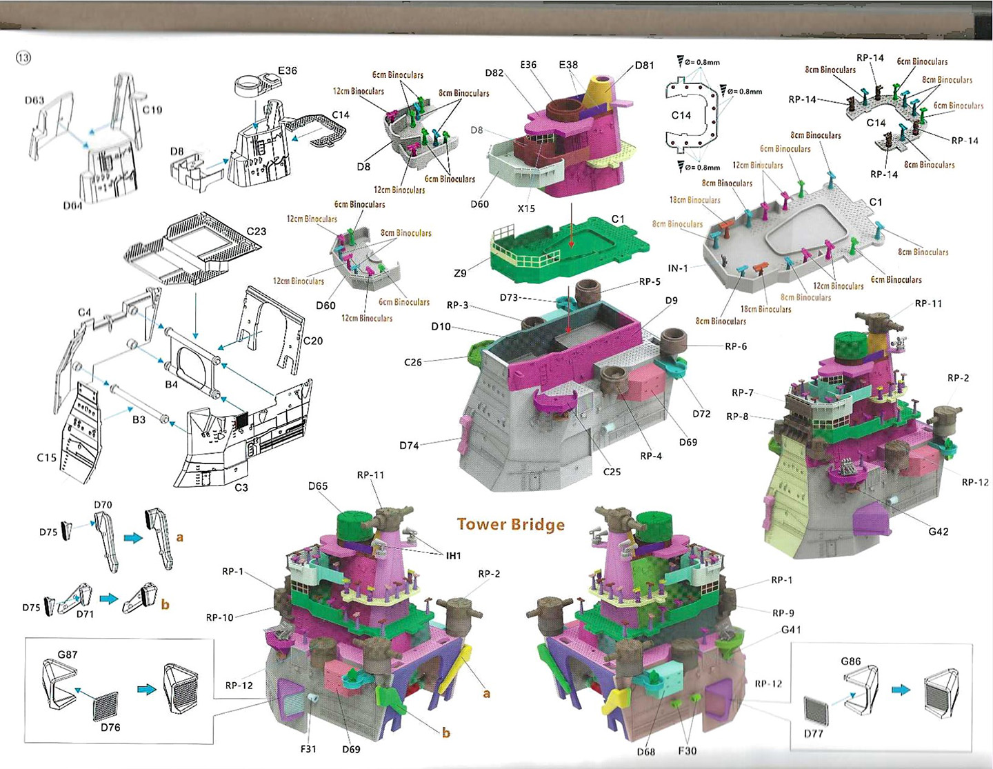 in the size of the bridge to reduce top-weight, the addition of hull bulges