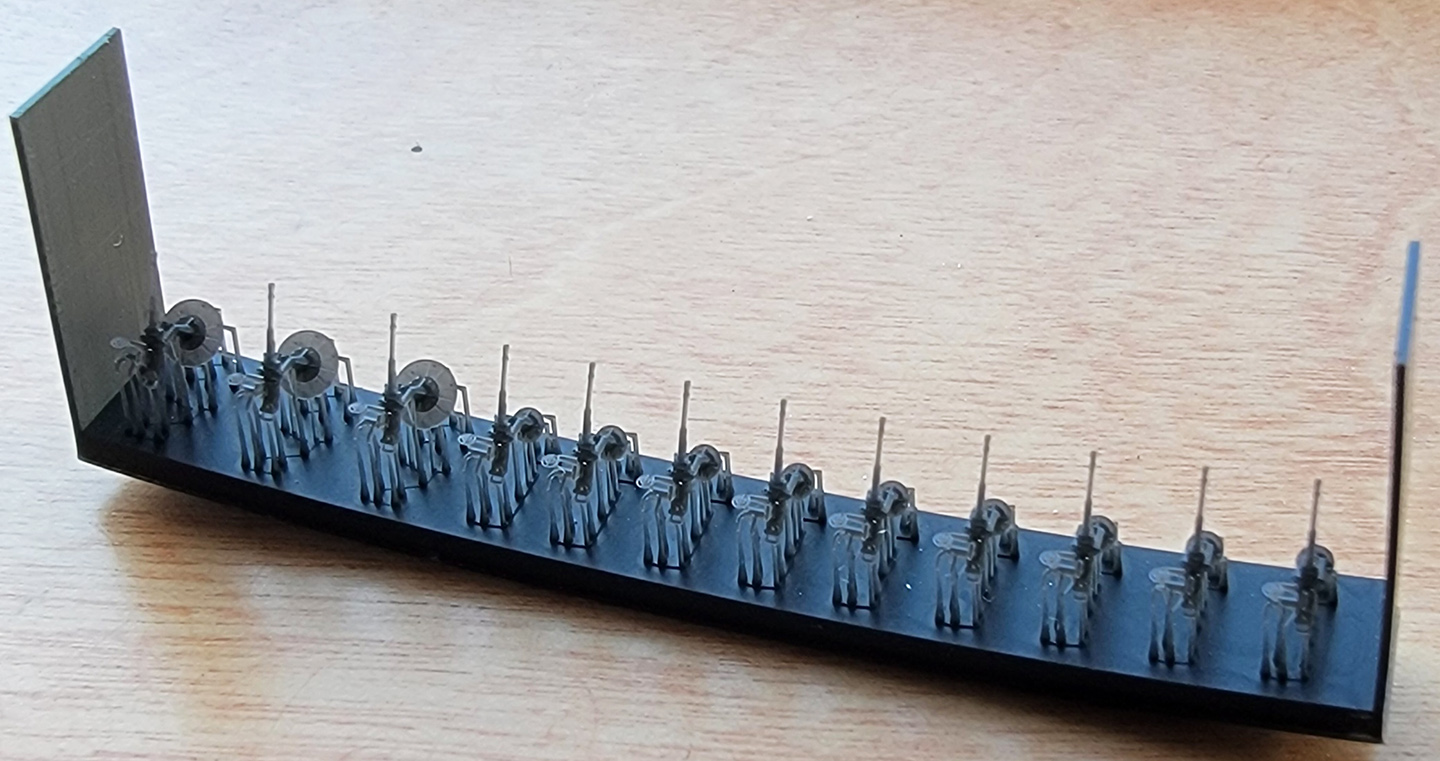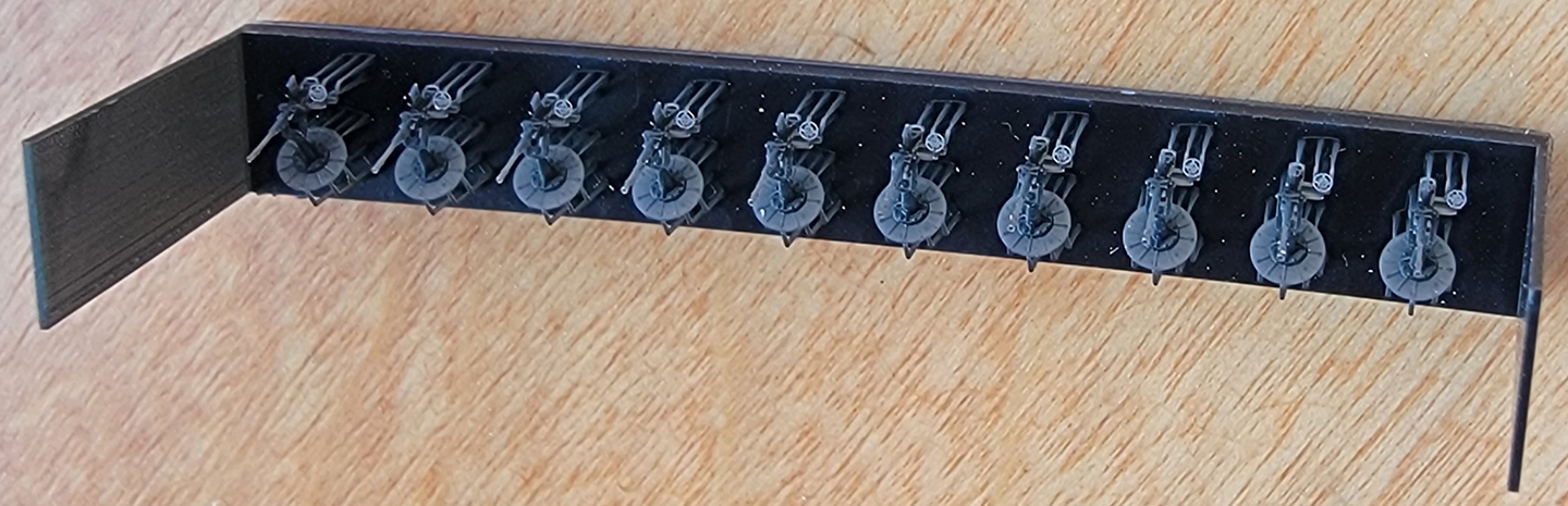 | Eight turned barrels are included as befits the four, twin 10cm main battery. These barrels mate with the 3D printed sleeves which are, in turn, inserted into the 3D printed turret faces. | |||||||||||||||||||||||||||||||||||||||||||