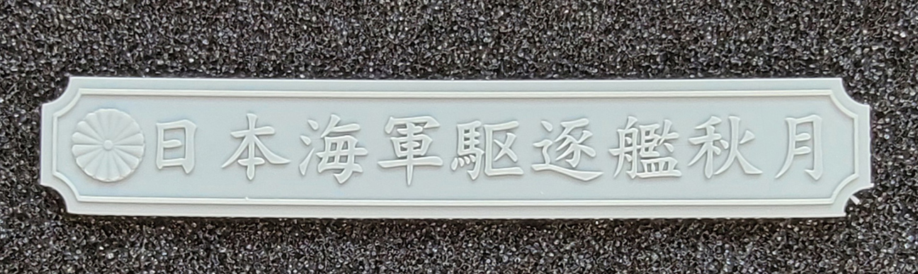 | It is 3D printed in light gray with Japanese lettering. The lettering translates as: “Japanese Navy destroyer Akizuki”. | |||||||||||||||||||||||||||||||||||||||||||