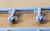 | Four Type 92 Mod. 4 torpedo tubes and shields are held on this one. Like the turrets, everything is superbly detailed and to scale. Also like the turrets, these mounts are a vast improvement over the Waterline Consortium equipment set versions that previously came packaged with these kits. These are also superior to the new Hasegawa versions that come with their new Yugumo class kits as well as being very close in appearance to other modern versions from Pit-road and FineMolds. Note that the more accurate scale size will mean a tighter fit in the space allowed for the tubes on deck. The kit only uses two sets of tubes and mounts, so there are two spares. | |||||||||||||||