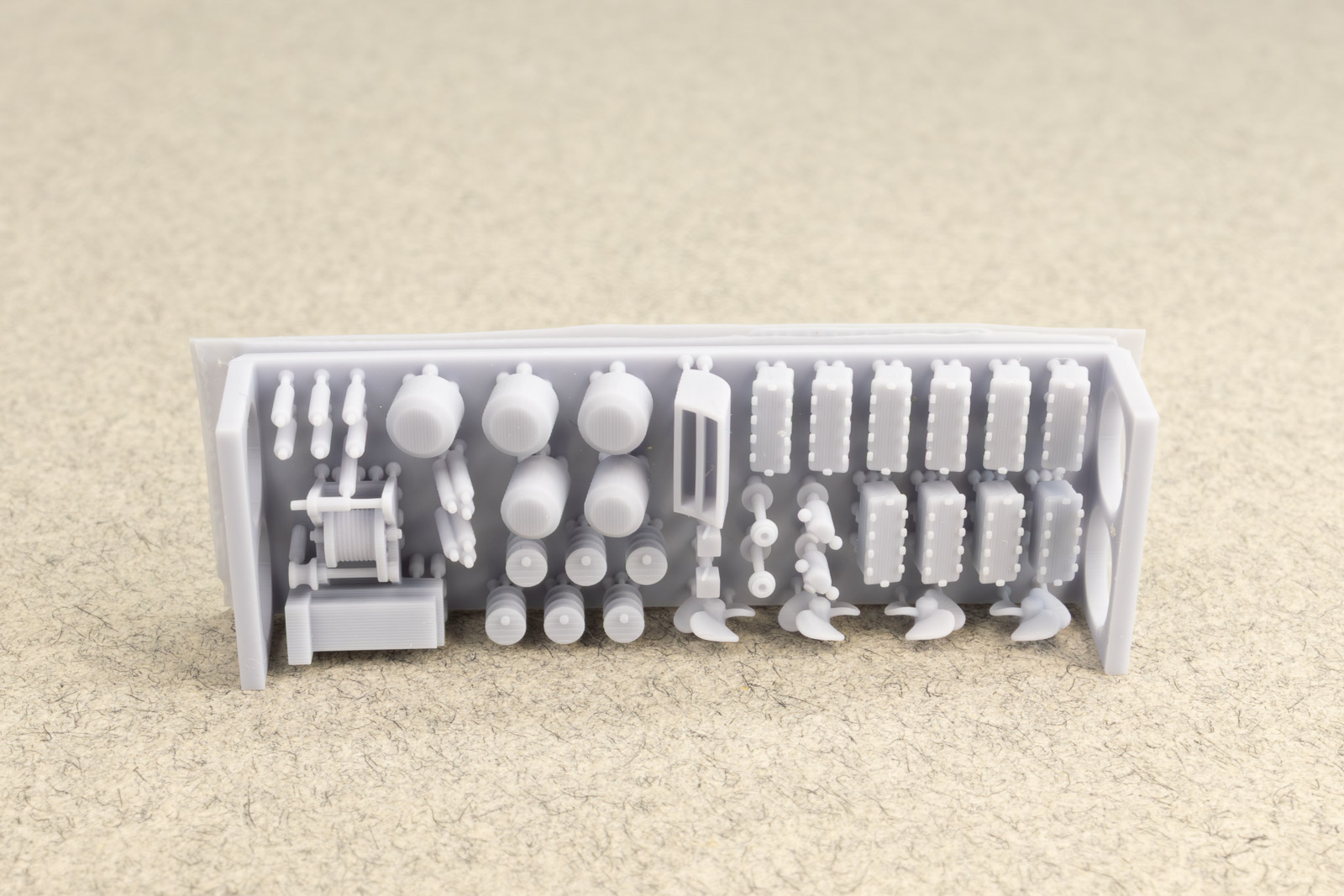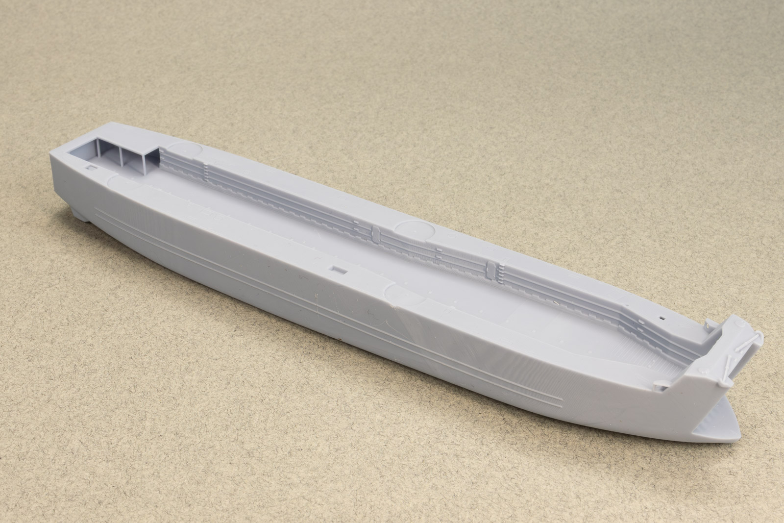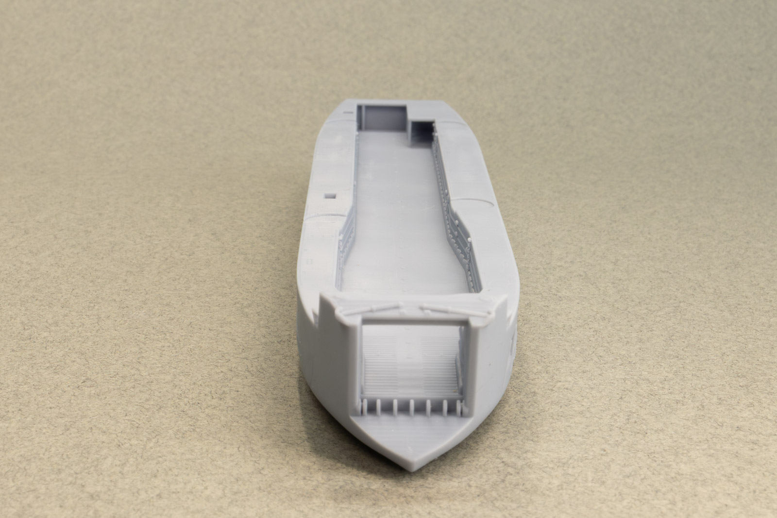 hull is printed in a single piece, with the bow door mounts, deck overhangs