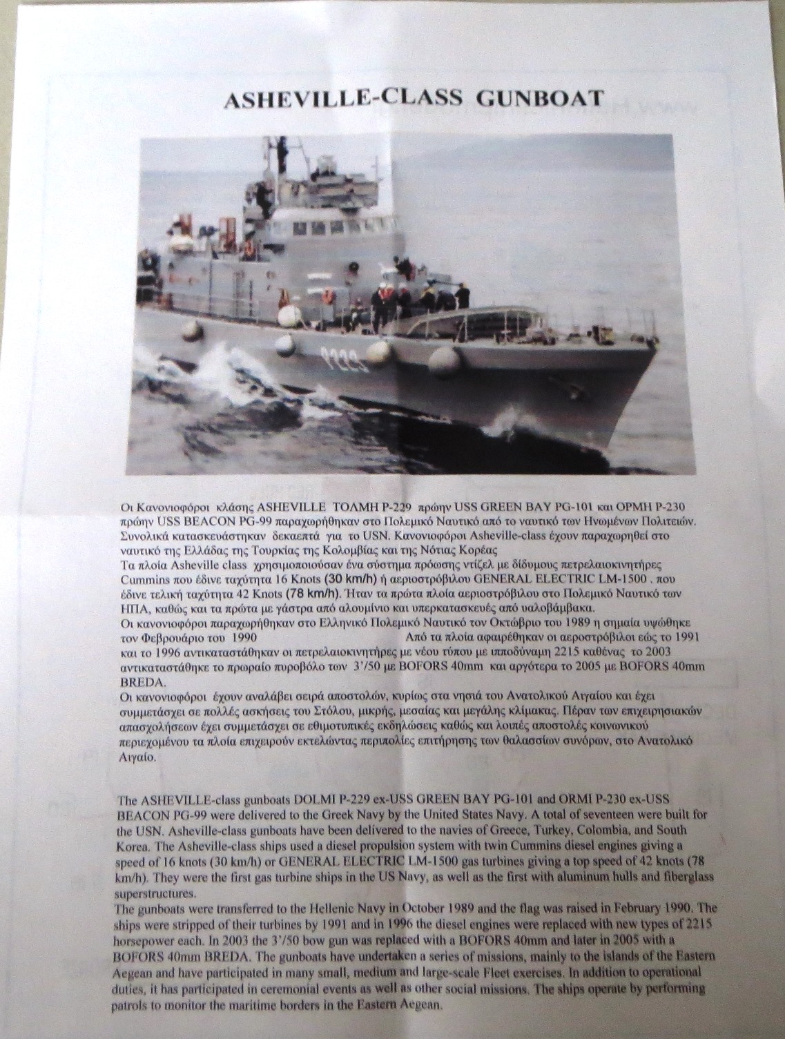 with a brief history of the boats in Greek service. The flip side has two