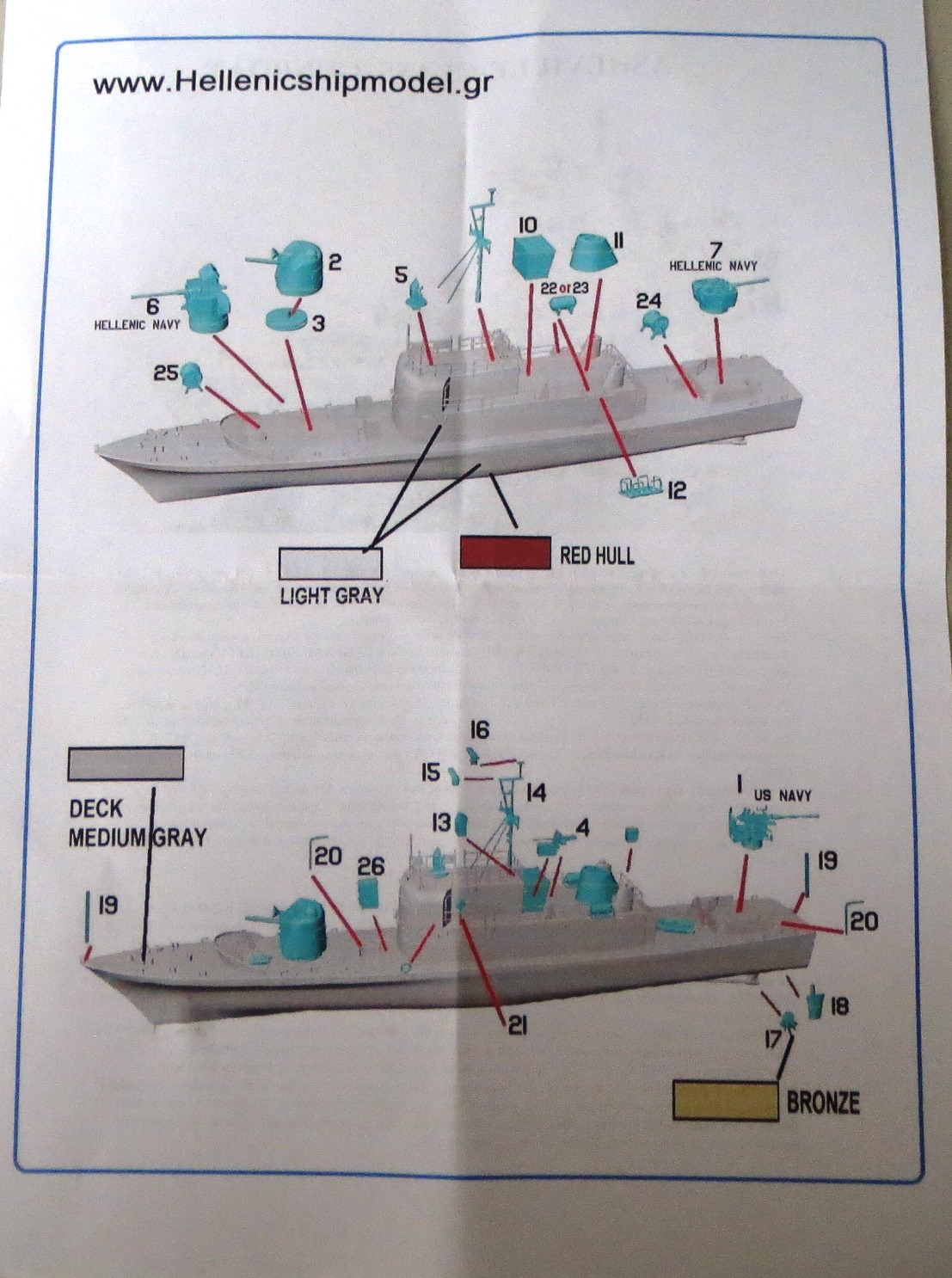 the US Navy and Hellenic Navy ships. I did notice that the instructions