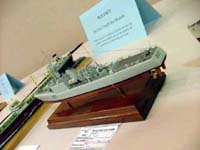 IPMS Vancouver Fall Show Saturday, October 6 2007 There weren't too many ships this year, unfortunately. However, of those that did enter, quite a few of them were spectacular entries. The first two pics are from the "Out of the Box - Naval" category. I guess one of Juniors thought that was the Junior category... The CSS Atlanta from Verlinden Productions (which I have unbuilt, incidentally!) was in the "Masters" category. A beautiful entry, for sure; I can only hope mine will turn out a fifth as good. The HMCS Kootenay, HMCS Haida, and Esso Glasgow were in the 1/600 and larger engine-powered category. The HMS Renown and USS Card were in the 1/601 and smaller engine powered category. If I had entered my BB-63, I might've secured third place by default! The single sailing vessel (which I cannot remember the name of, other than that it's HMS) was the only entry in its section. The Atragon submarine from Fujimi was an interesting entry in the sci-fi section; certainly not one that one would see often! Finally, there's a work-in-progress build of the USS Block Island, from the same builder of the USS Card. Naturally, it wasn't a contestant, but was put on display as part of the club display. Best Regards, |