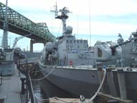 Here are some photos of the Tarantul I class corvette Hiddensee, currently moored at the Battleship Cove in Fall River, Massachusetts.
