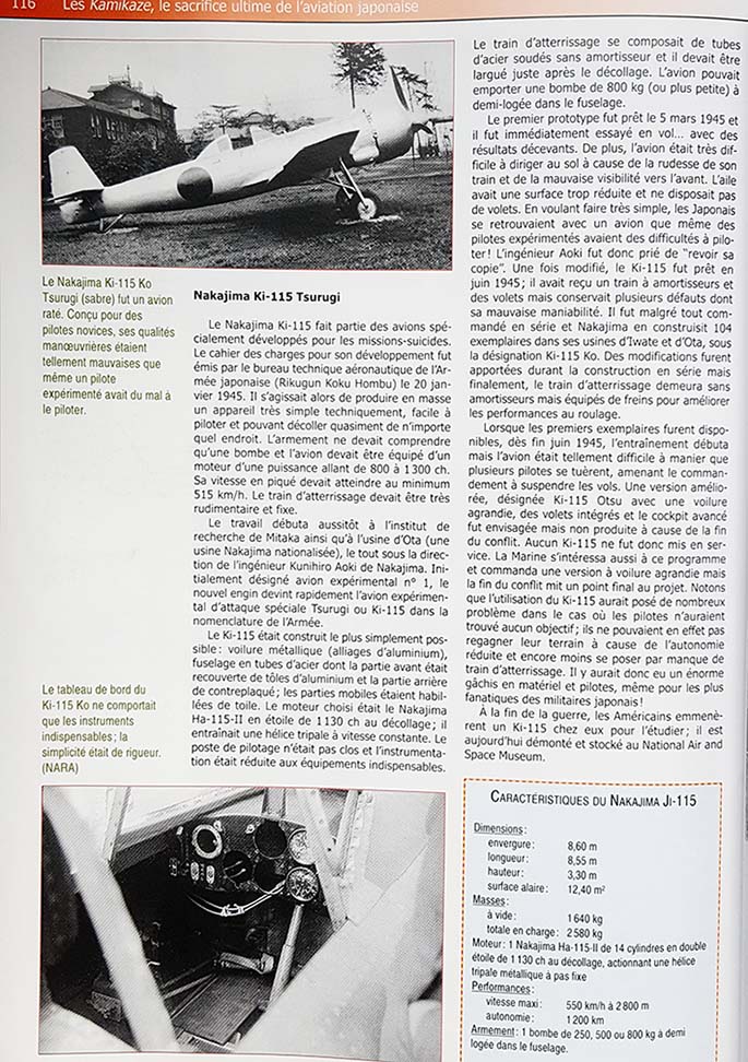 | This particular issue (120 pages) covers the Kamikaze (Divine Wind) campaign of late 1944-1945, in which Imperial Japanese military aviators devoted themselves (though not always voluntarily) to suicide attacks upon US and allied warships using all manner of aircraft with a maximum or specially designed weapons load. It was a campaign borne of desperation, to allow for more effective attacks than those conducted by conventional attack, so as to turn back the tide of war in favor of the Japanese. This issue was written by Michel Ledet, a noted French military aviation author. | ![]() |