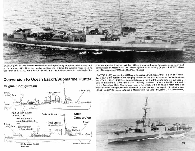| Squadron Signal publications has added another book to their In Action series for the modeler. This one covers some of the early prewar destroyers of the Sampson, Caldwell, Wickes, and Clemson Classes. The various APD, AV, and DM conversions are also covered. | |