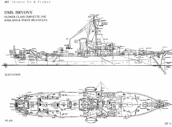 Unlike most of the Flower class corvettes the Bryony was sold to Norway to become the weather ship Polarfront II. She was extensively refitted twice in her post war career and each time there are photo's that show her appearance. The Bryony served until 1980 when she was scrapped, the end of a long and storied career.