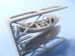 The detail on the boats is very well done. The canopy and rudder are appropriately thin. I think the strakes along the hull sides and the engine bulkheads may be a bit thick, but no more so than white metal, cast resin, or injected styrene counterparts. the hull surface is extremely smooth, no print lines at all, and the handrails around the tiller are finely printed, show no print lines, and are sturdy enough to hold up to a bit of handling. The printed prop looks the part. The only point of caution I would offer is to be very careful cutting free and cleaning up the rudder. It's fine to the point of translucence. |