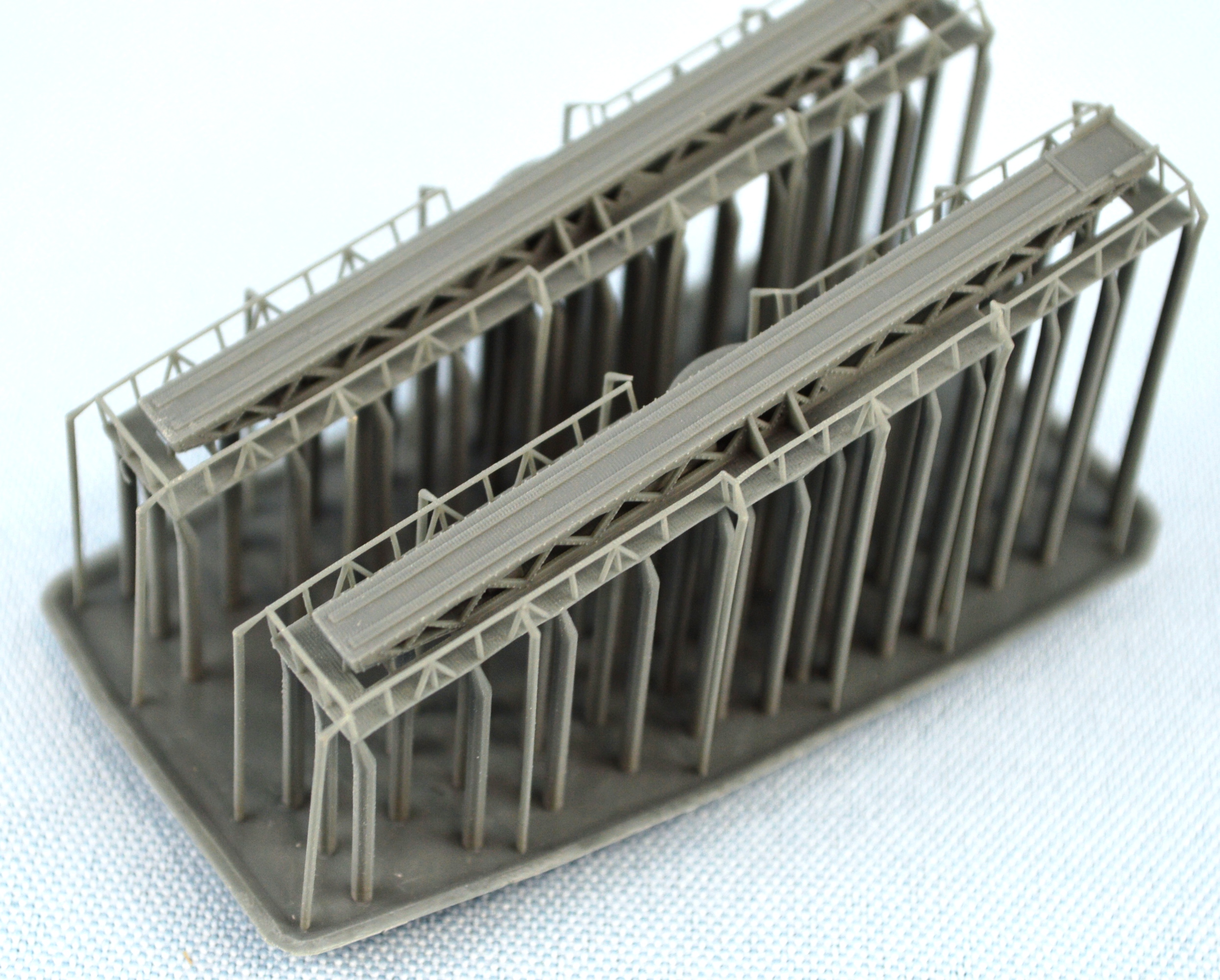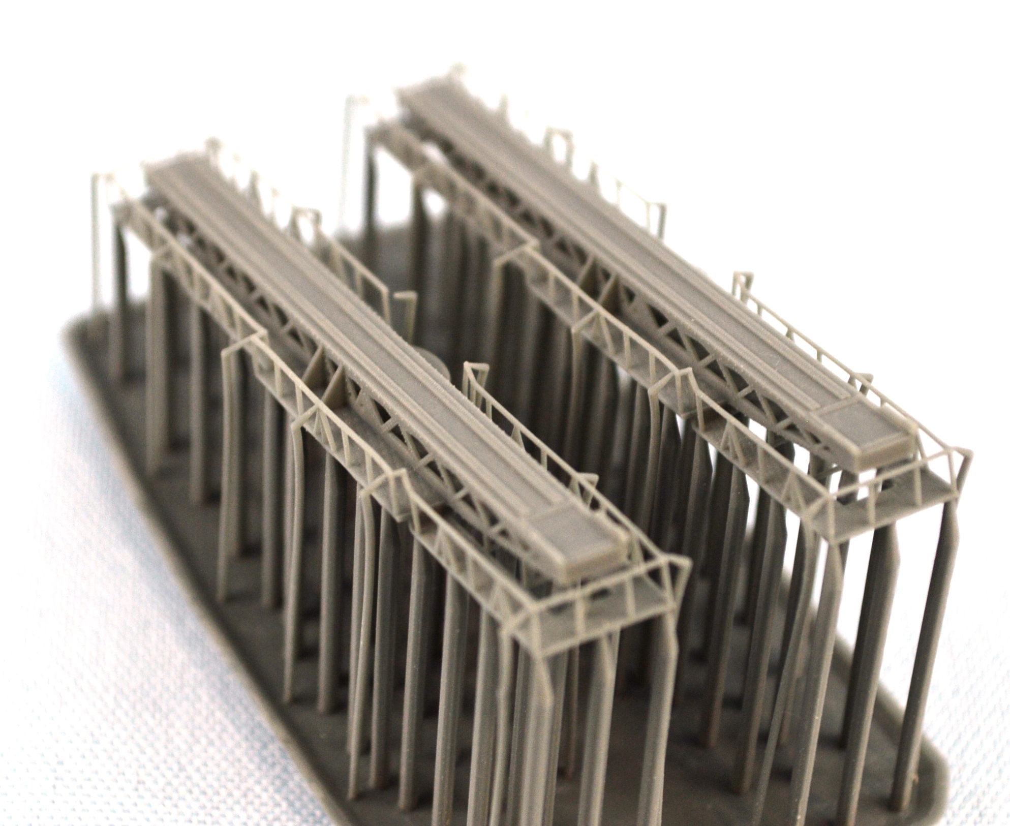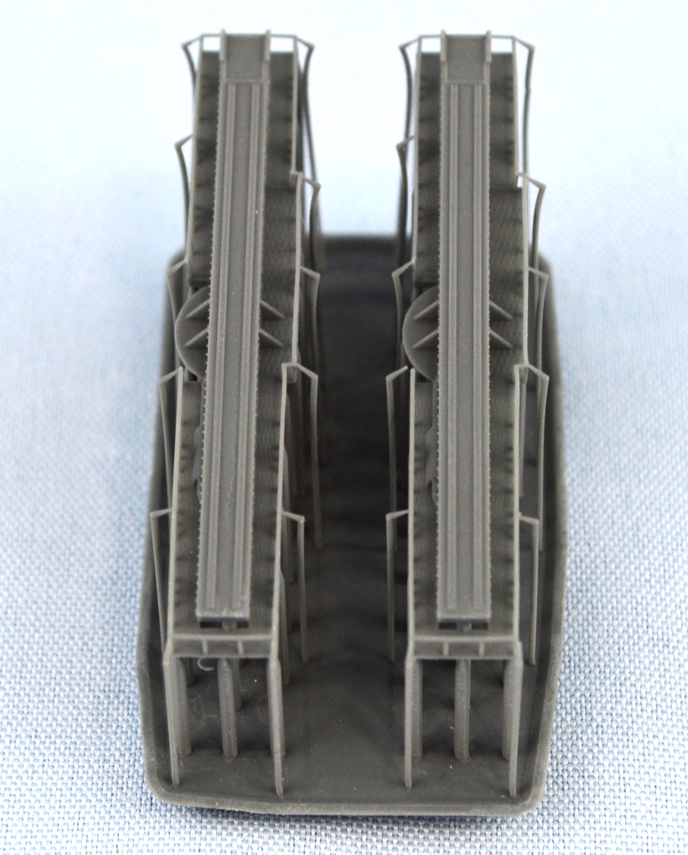 There are two catapults per print raft. The details on these are very good - there are finely printed railings, tread plating and visible pistons on the sides of the catapults. The set only includes a pair of catapults - it does not include the pedestals, or floatplanes. |