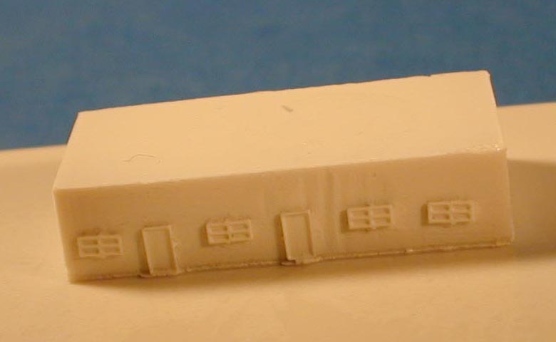 | Seven Dockyard Buildings that include long warehouse structures and small sheds that can be placed anywhere. (Kit #BF704E also available separately for $15.00 ) The buildings include flat roof types and buildings with pitched roofs. One of the flat roof buildings looks like an ammunition building that I saw in a Mare Island dockyard photo. Note the roofing details on the various structures. | ![]() |