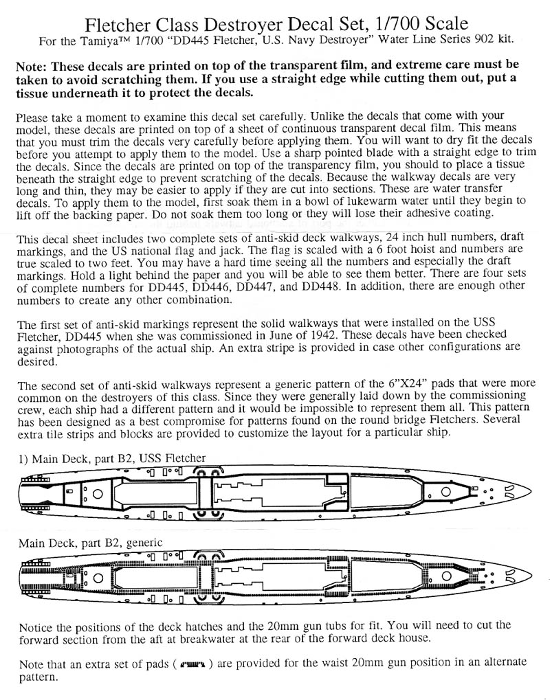 | The Tamiya Fletcher set included all the markings to build the USS Fletcher or any other generic early round bridge version. Extra markings are included in case the ship you are modeling is a little unique. | ![]() |