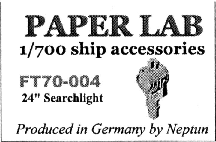 | By now you are aware of the new CAD designed weapons and fittings produced by Paper Lab. if not you are missing out. I have reviewed a few of these and everytime I look at these new sets, I am blown away. These white metal 24" searchlights are the best ones I have seen in this scale so far. Not only are they exceptionally detailed, they are durable and not as fragile as resin parts. The parts are almost too small to photograph properly. These parts represent the standard 24" searchlight fitted to just about every US Navy ship around. These parts look just like the drawings I have and they are as true to scale as you are going to get. |