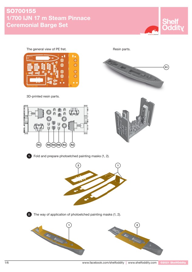 Each set contains two (2) barges, photo-etch and 3D printed parts. These boat were found on many Imperial Japanese Navy ships. According to the Shelf Oddity website, the 15m barge was "widely used on all IJN heavy vessels during WWII era. This was a favorite boat of Adm. Yamamoto", while the 17m barge was "used on all IJN battleships during WWII era as a ceremonial barge". These two sets are among a series of IJN boats that Shelf Oddity offers. Each package contains two (2) resin boats, photo-etch and 3D printed parts. |