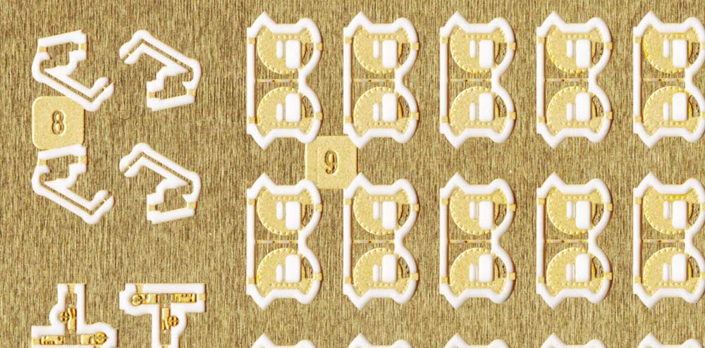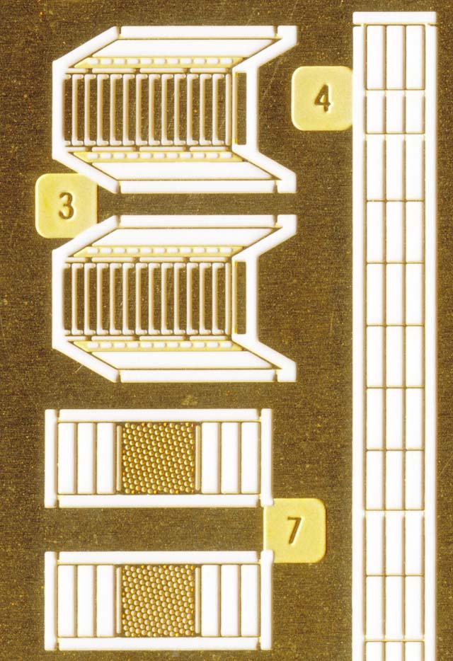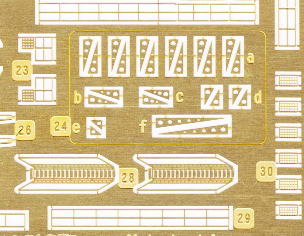 This first fret of photoetch, fret A, has bridge window upgrades, railings, ladders and various other details for the conning tower/forward bridge superstructure.